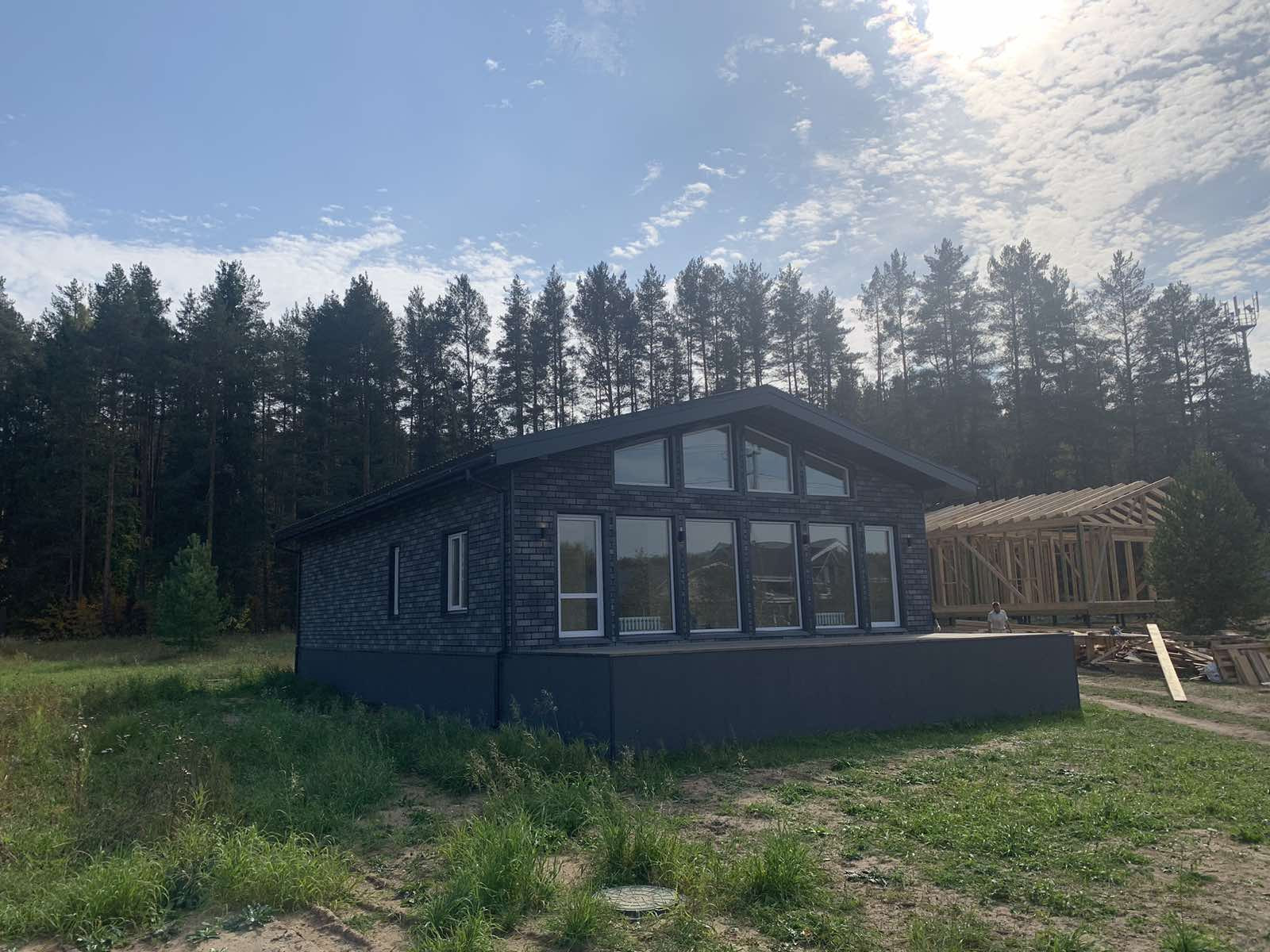 Отделка дома снаружи плитка Хауберг "Готический кирпич" на влагостойкую ОСБ с вензазором, подшива софиты, оконные откосы , отливы-железо. Внутри имитация бруса, полы ламинат 33 класса, под ламинатом многослойная фанера,коридор санузел бойлерная, то есть все влажные помещения , кварцвинил-100% влагостойкий, долговечный, принимающий температуру помещения материа, натяжные матовые потолки с подсветкой.