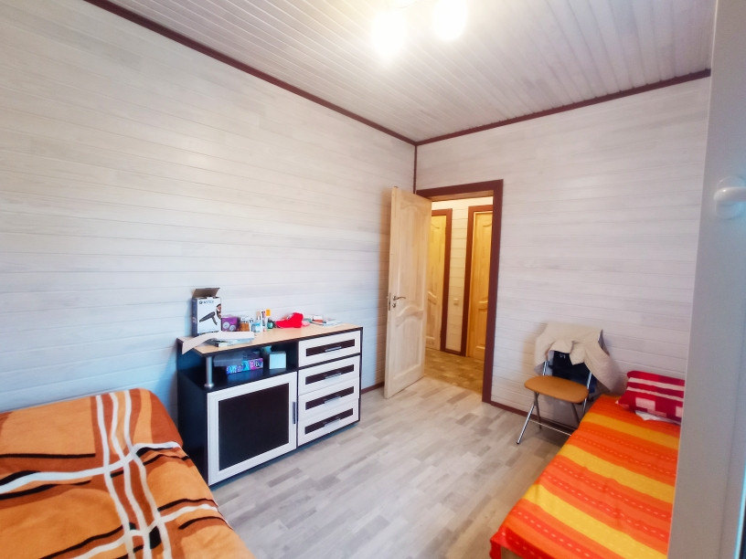 В живописном р-не Карельского перешейка, в д. Светлое Приозерского р-на Лен.области, предлагаю уютное домовладение (дом, баня, беседка). Строения все выполнены в одном стиле по каркасной технологии, на фундаменте - УШП плита, крыши-катепал, отмостки выложены камнем, встроенная ливневка. Участок 12 сот ИЖС огорожен капит. забором, 2 въезда: центральный автоматические откатные ворота, за баней распашные ворота. Участок ухоженный-выполнены ландшафтные работы-газон, дорожки и парковка для машин выложены камнем, цветники, молодые деревья. У дома удобная планировка-терраса, у входа небольшая тех. комната (бойлер, котел), раздельный санузел, гостиная с камином, кухня, 2 изолированные спальни.Дом очень теплый, отличная система отопления-электр. котел (водяные теплые полы в коридоре кухне, санузлах, радиаторы в комнатах). Водопровод центральный (из артезианской скважины). Канализация 2 септика (дом, баня). Баня большая-комната отдыха, санузел, парная, тех. комната, дровник. Электричесвто-15 кВт. Имеется возможность подключения природного газа.