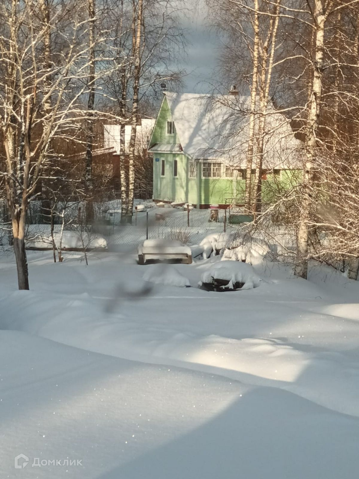 Ровный сухой участок, правильной формы, по периметру огорожен сеткой со стальными рамами. На участке, помимо дома, есть гараж и две пристроенные к нему поленницы.