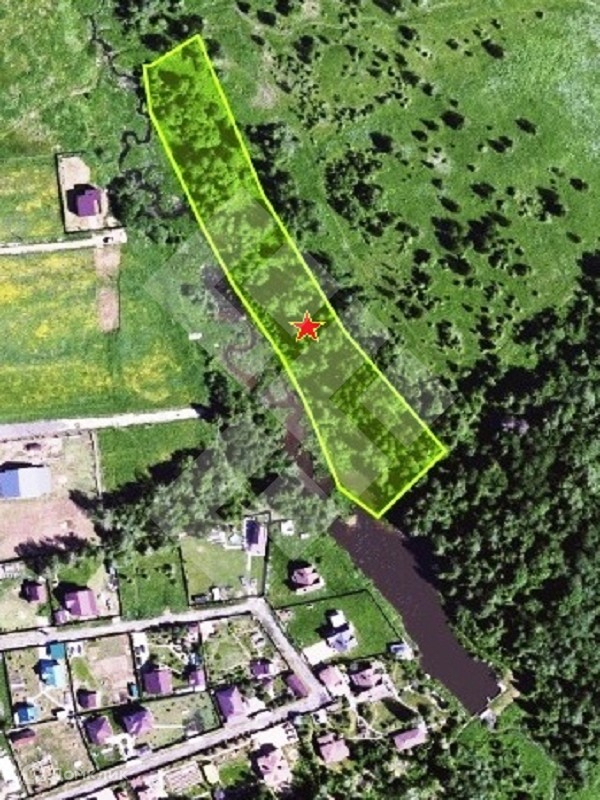 Полулесной участок, граничащий с протокой и выходящий в пруд.