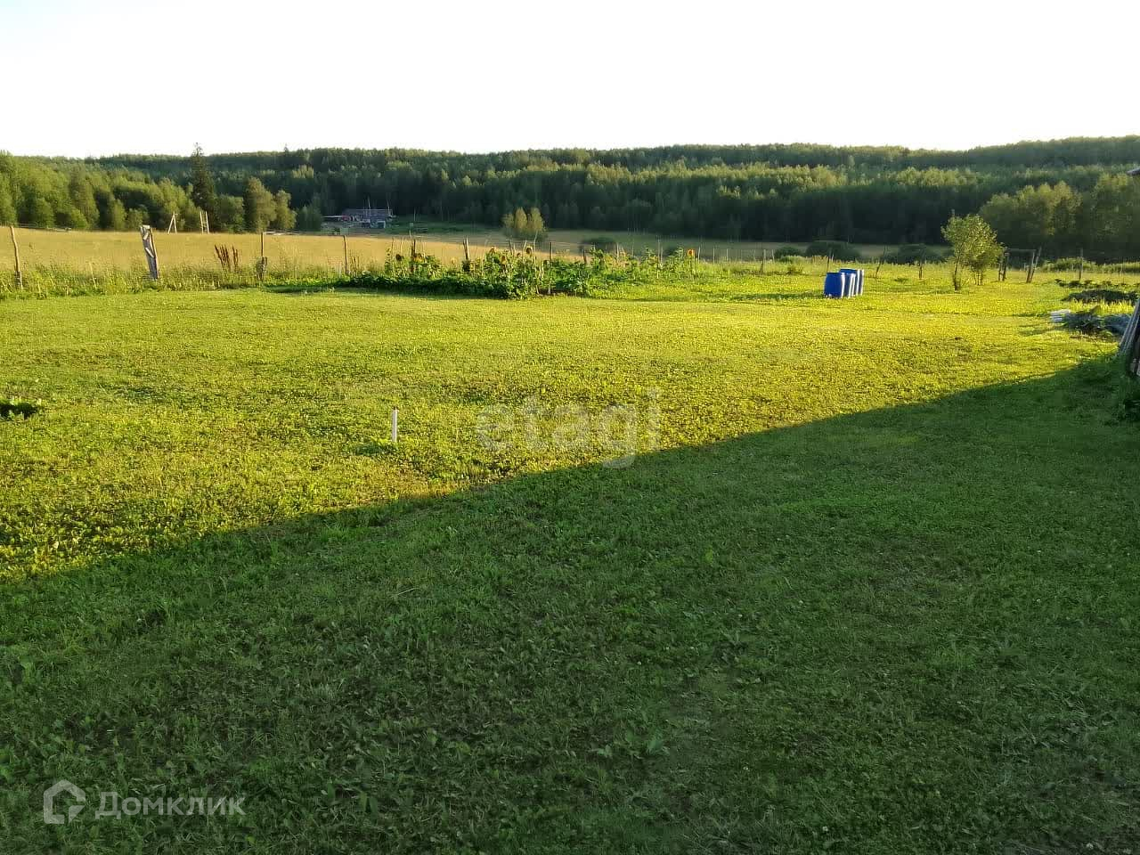Участок правильной прямоугольной формы, выровнен, крайний на улице, соседи только с одной стороны. С участка открывается шикарный вид на лес. В пешей доступности расположен небольшой прудик, где можно половить рыбу. На участке расположены небольшой летний домик из бруса для отдыха (комната и небольшая кухня) и хозпостройка, в которой можно хранить весь необходимый инвентарь для строительства основного дома и для огорода). В домик заведены вода (из колодца) и электричество. На участке также расположен садовый туалет. Разработаны грядки, разбит цветник. Въезд на улицу осуществляется через шлагбаум, установленный силами собственников.