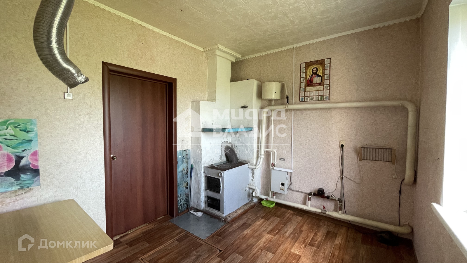 В квартире косметический ремонт, все окна ПВХ, на полу линолеум, входная дверь хорошего качества, добротная, надежная. Санузел с душевой кабиной. Планировка: 3 комнаты и кухня. Вода со скважины, подогрев - бойлер, отопление электрическое и печное, канализация - выгребная яма.