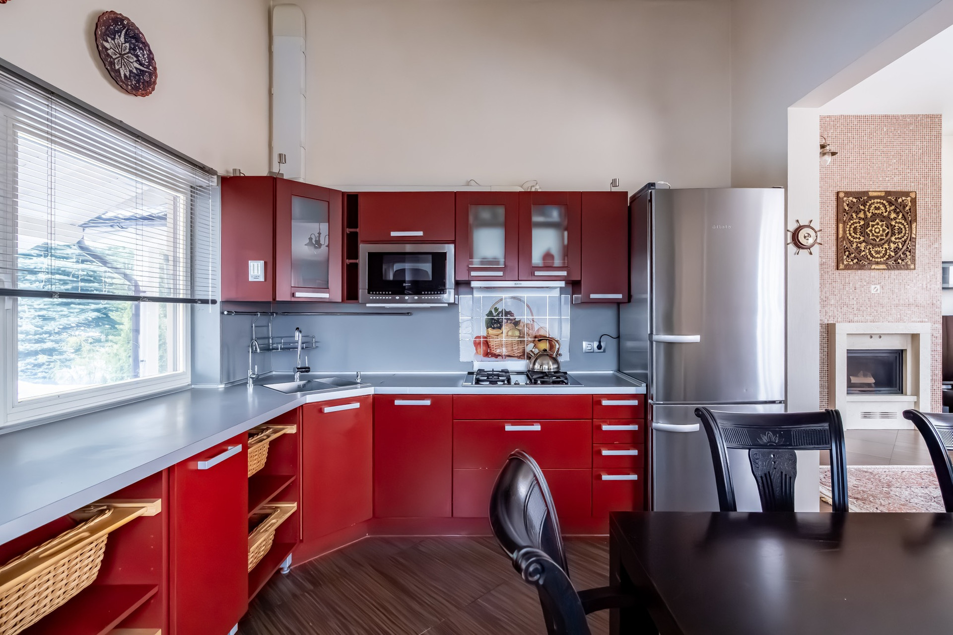 На первом этаже расположились большая кухня - столовая с камином и выходом на террасу, которая станет прекрасным местом для семейных вечеров, две спальни с гардеробной и санузел.