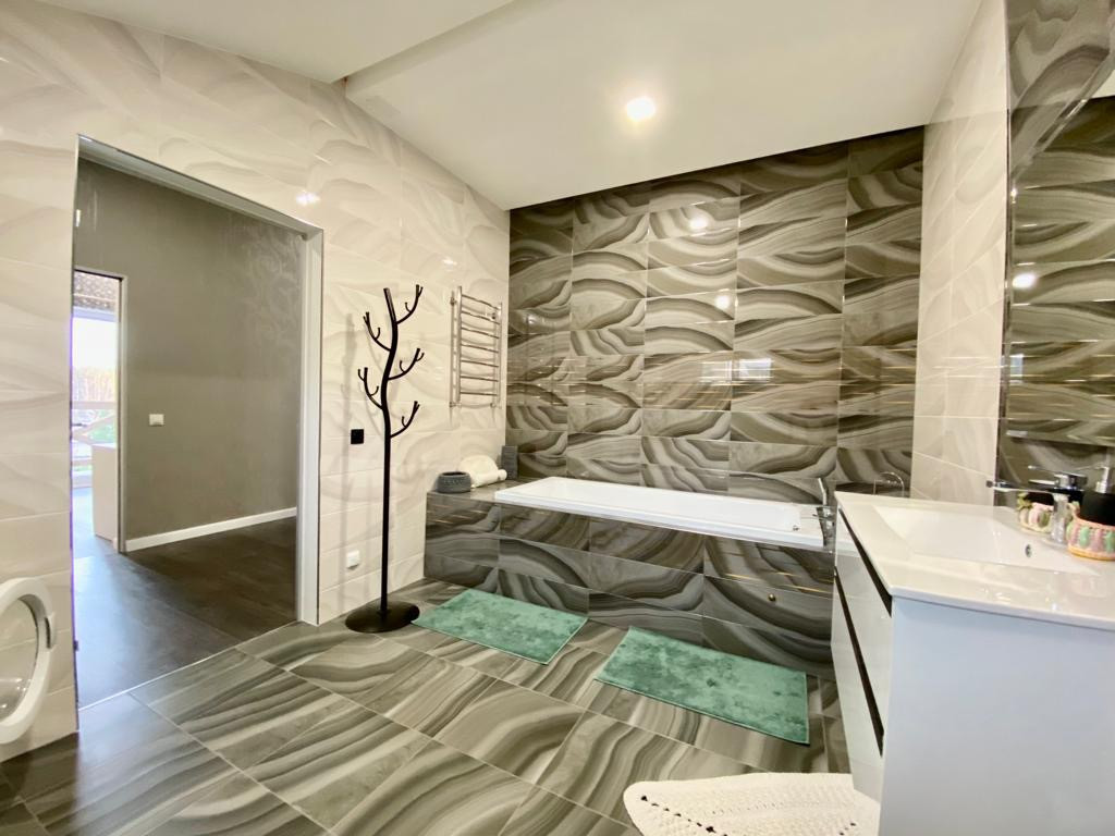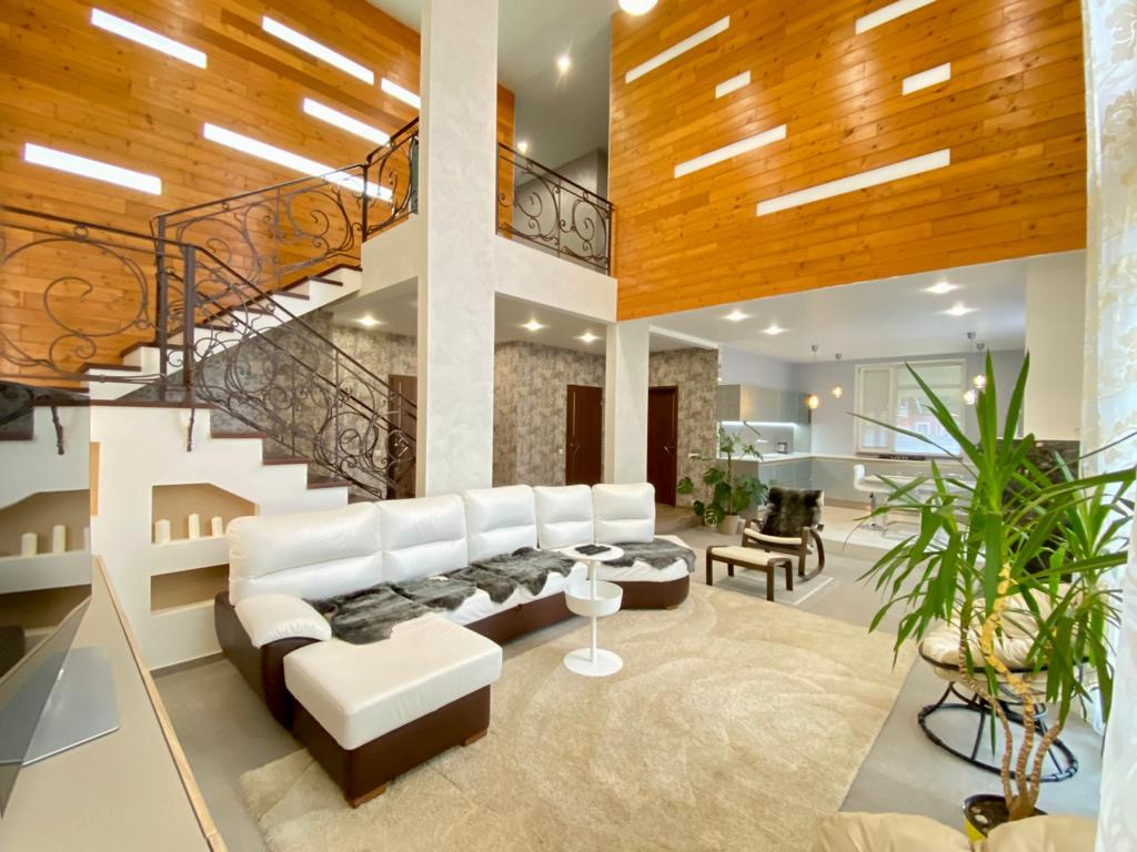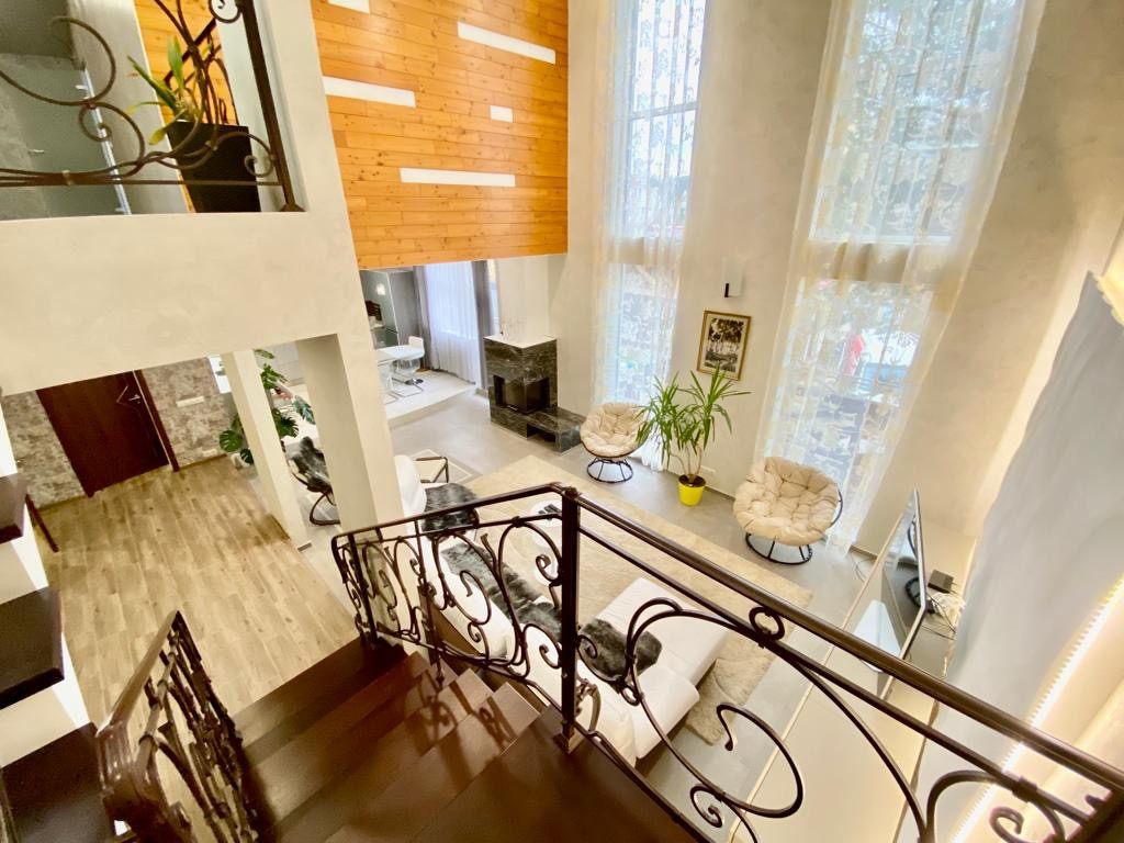 Дом построен со вторым светом по дизайнерскому проекту, высота потолка в гостиной 7.5 м. Много воздуха и пространства.