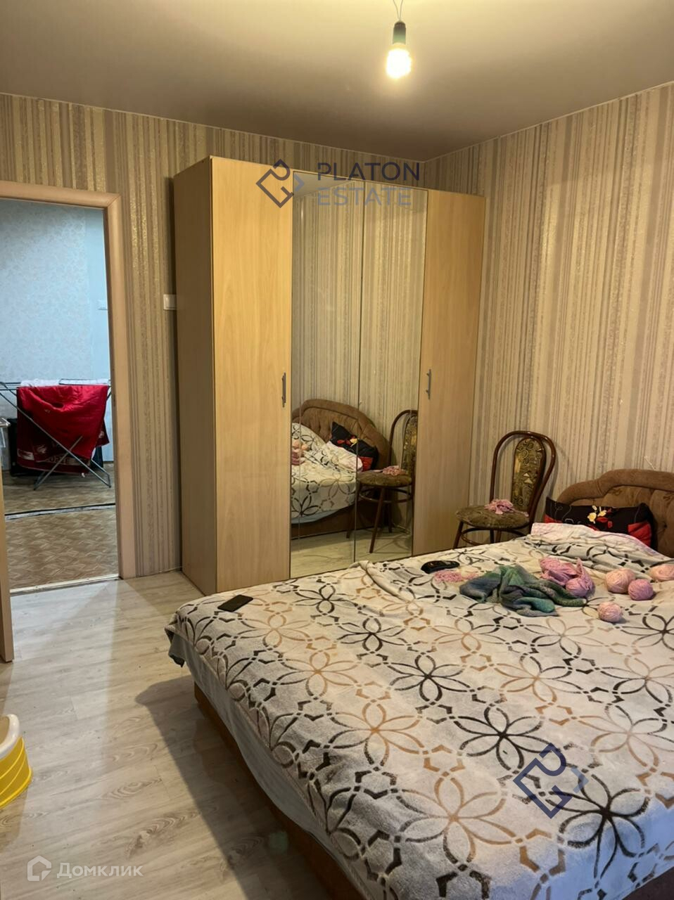 Квартира   в хорошем состоянии.  Ламинат, линолеум, стеклопакеты, больше 5 лет в собственности.