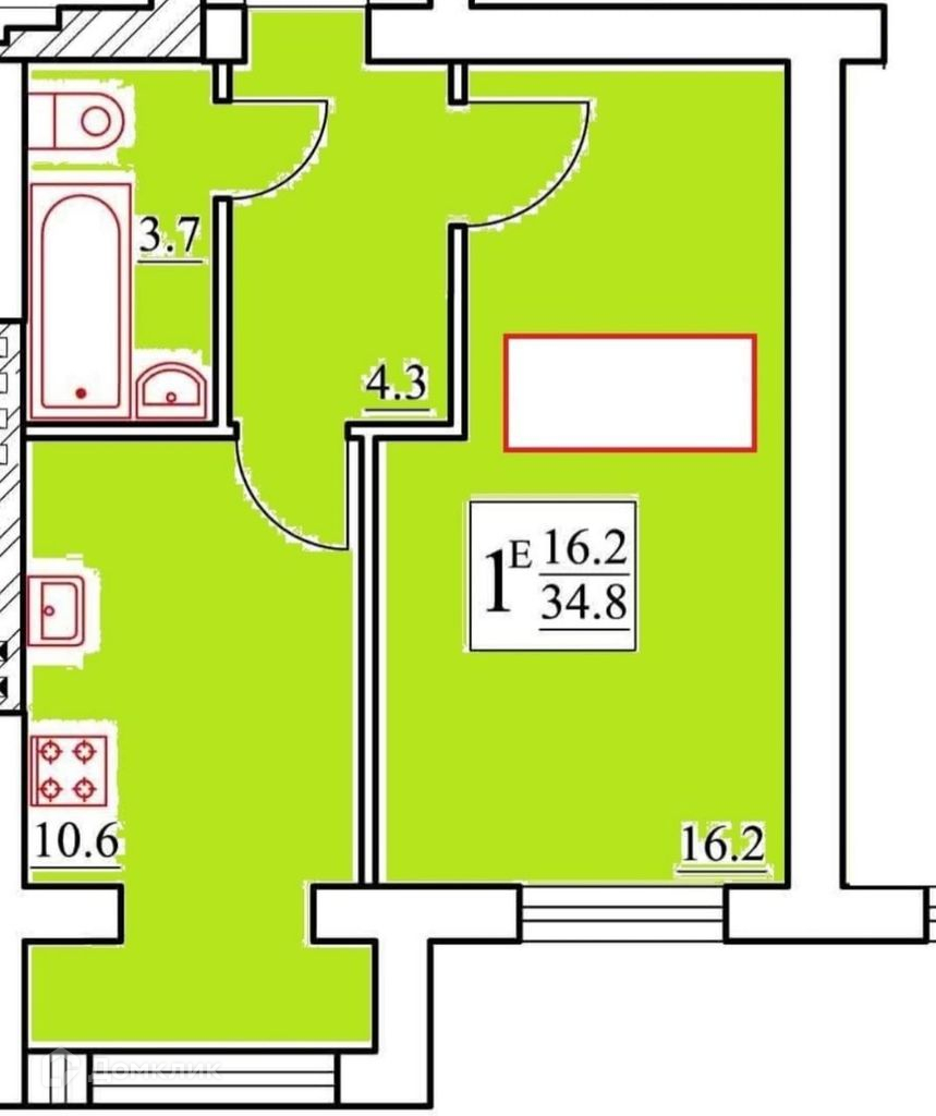 Общая площадь 34.8 м2