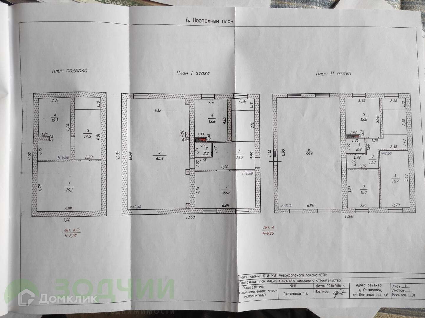 Высота потолков: подвал — 2.5 м., 1 этаж — 2,6 м., 2 этаж — 2,6 м.