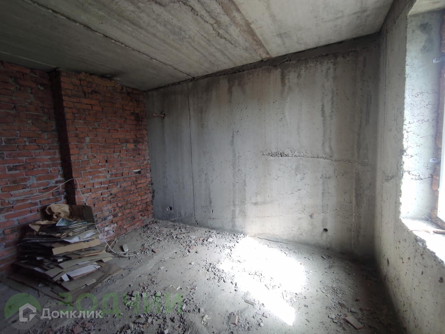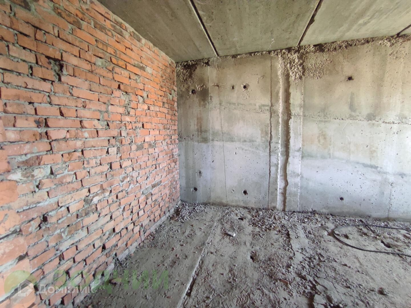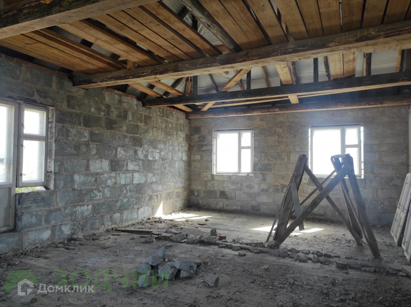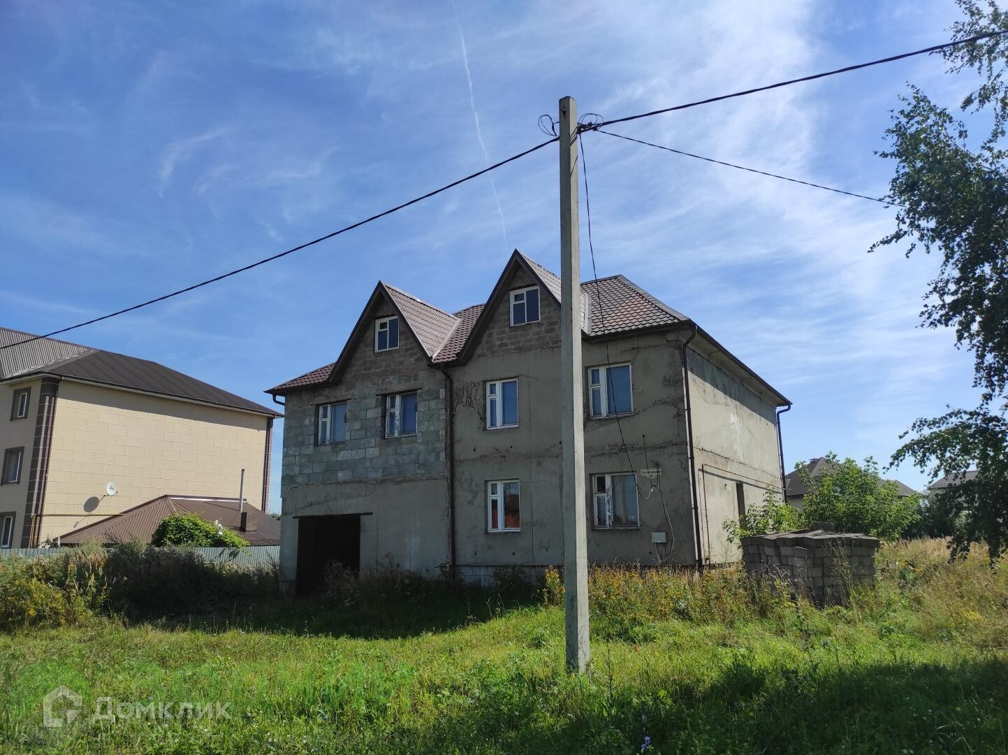 На участке расположен монолитный 2-ух этажный дом. Дом в черновой отделке, внутренние перегородки кирпичные. Окна деревянные. Крыша — металлочерепица.
