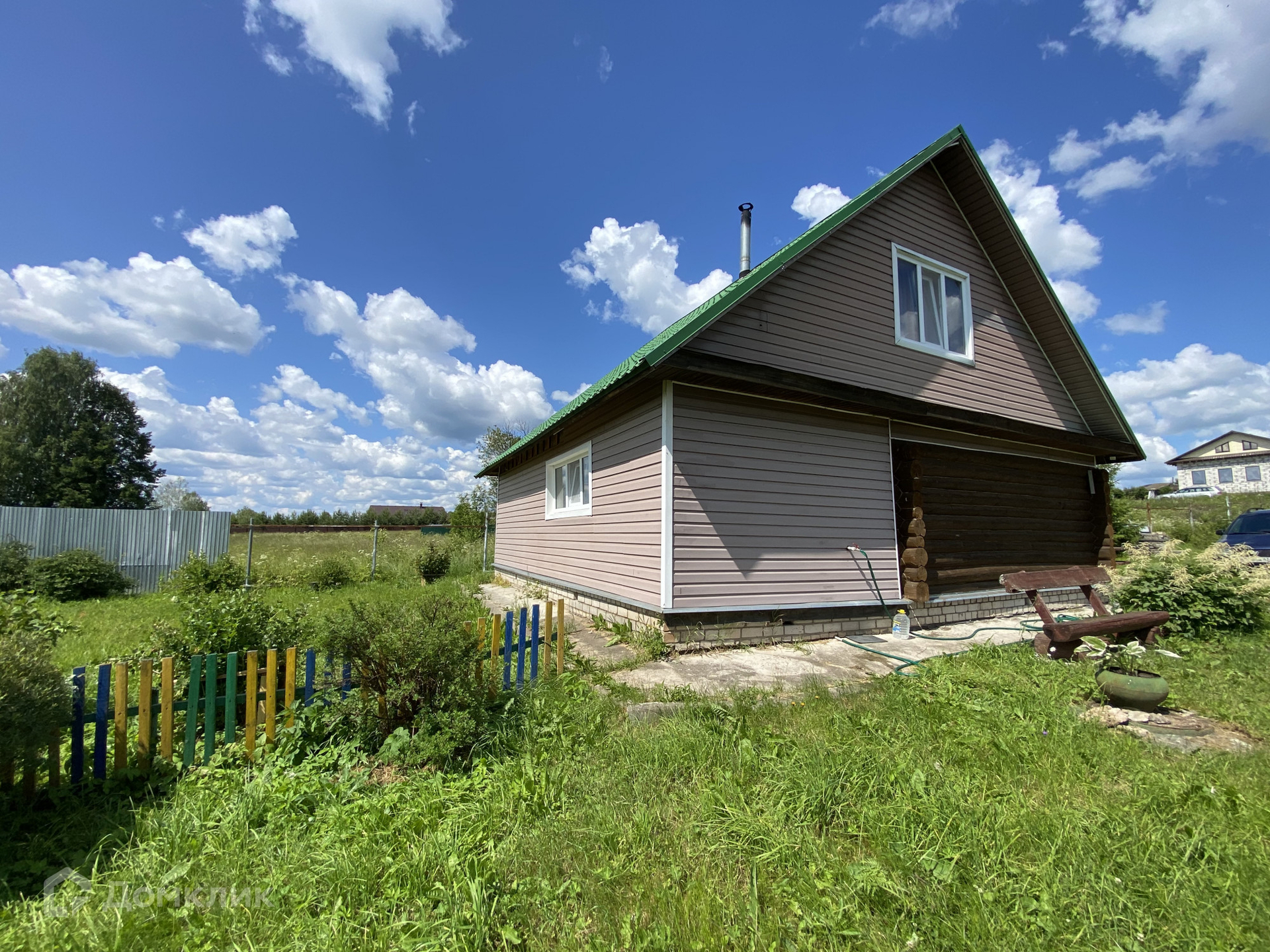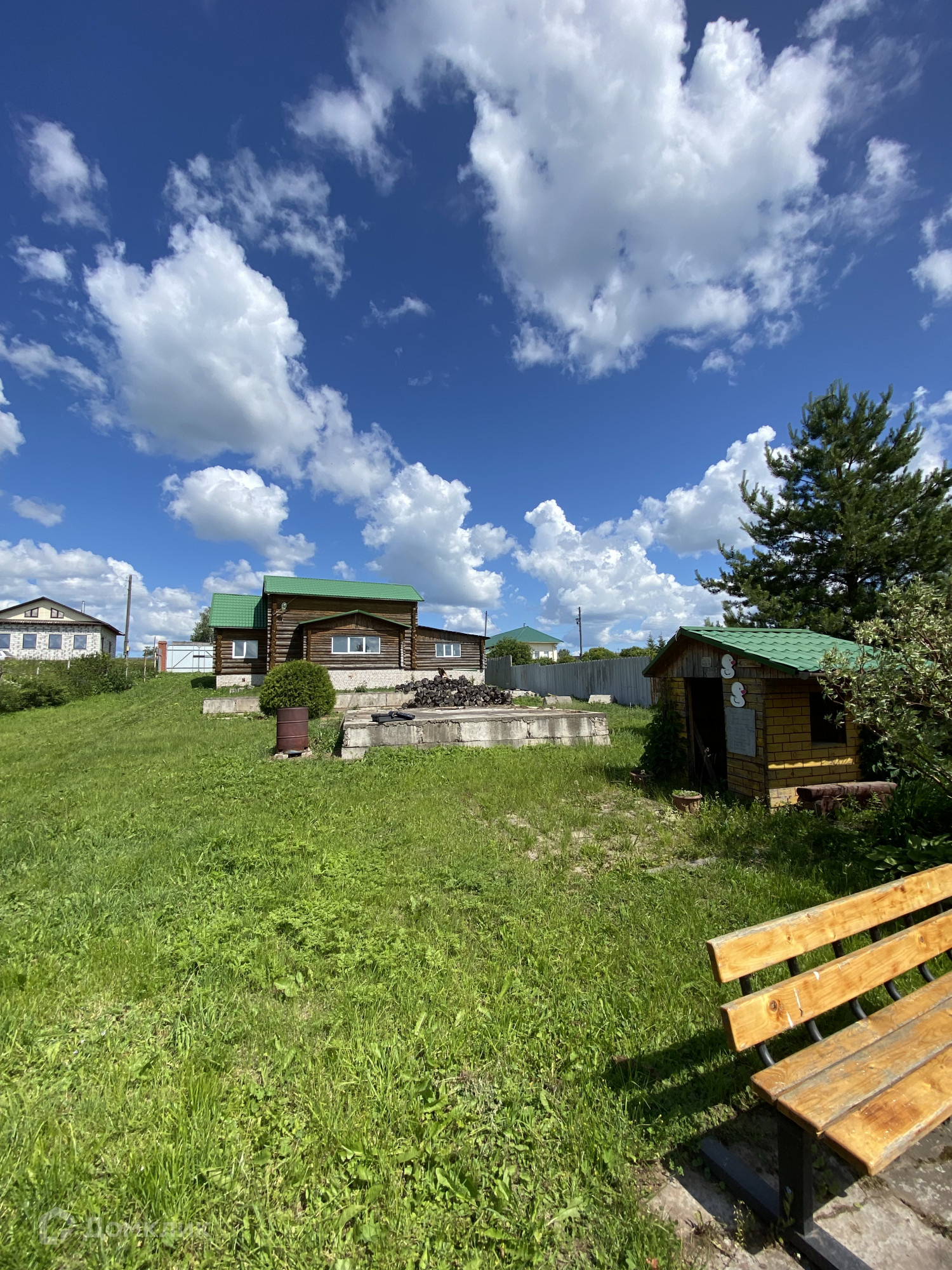 В продаже дача в отличном, красивом месте. Участок 25 соток со своим выходом к пруду, дом-баня, рубленное бревно, 2 этажа полностью готовая для жизни, пригодна для круглогодичного проживания. Отопление печь и электрообогреватели. Центральная вода заведена в дом, канализация.  Дом общей площадью 96 кв.м. Второй дом рубленное бревно черновой, общая площадь 147 кв.м. Одноэтажный, фундамент кирпичный. Электричество заведено в дом. Требует отделки. Так же есть фундамент под летнюю кухню-барбекю. Участок ухожен, хорошие соседи. Почти до самого дома асфальт. Деревня жилая, дорогу чистят круглый год. В деревне есть магазины, медпункт, школа, детский сад. Подходит под ипотеку.