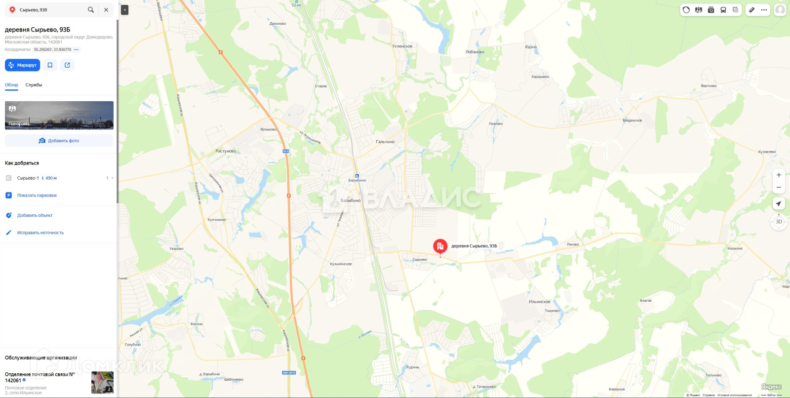 До Ж/Д станции Барыбино 3,5 км.