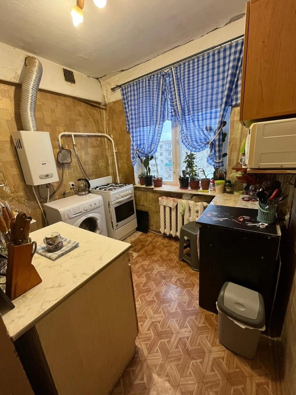 НЕ общежитие!!! Отличное состояние, стеклопакет, балкон застеклен, большая гардеробная для хранения вещей, газовая колонка автомат, чистые места общего пользования. Соседка одна женщина. Комната выделена, отказы не требуются.