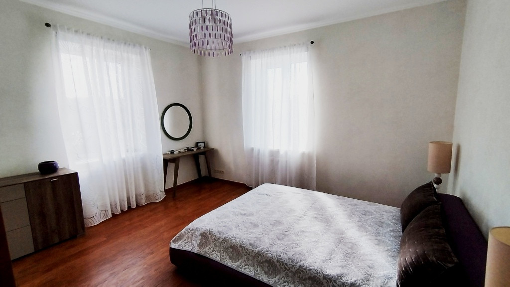 Агентство недвижимости Риэлти - Город предлагает купить жилой дом в камерном поселке, находящийся в деревне Сысоево Истринского района Московской области, расположенный на удалении 46 км от МКАД , 5 км от ЦКАД, 10 км от г. Истра. Дом, общей площадью 285 кв. м, 2012 года, построен из керамических блоков Поротерм (Porotherm) , облицован декоративным кирпичом, крыша дома - мягкая кровля, расположен дом на земельном участке 11 соток. Дом двухэтажный (по документам) по факту три жилых отапливаемых этажа: на первом этаже находятся: кухня, гостиная с печь-камином, жилая комната, зимний сад, прихожая, холл, топочная, санузел; на втором этаже: три спальни, холл, санузел; на третьем этаже: зона отдыха, скрытые места для хранения вещей. Высота потолка - 3 м. Полы в доме - плитка, ламинат, водяной теплый пол. Дом с мебелью и бытовой техникой. Участок ухоженный, с плодовыми деревьями и кустарниками, грядками для выращивания овощей и ягод, местом под барбекю и зоной отдыха, на участке растут туи, сосны, кусты можжевельника, участок огорожен забором, оборудованный автоматическими воротами и калиткой. На участке так же находится крытое место для машин, хозяйственная постройка 12 кв.м, есть свое место для двух гостевых машин. Коммуникации: электричество 15 кВт, отопление - газ магистральный, централизованный водопровод, канализация автономная, септик Топаз. Дом находится в экологически чистом месте, в окружении леса, речка в пешей доступности, хорошие асфальтированные дороги, место тихое, круглогодичный подъезд, на въезде в поселок установлен шлагбаум, есть охрана, многие соседи живут постоянно, рядом большой магазин Пятерочка. До остановки общественного транспорта 2 км, 12 остановок до ж/д станции Истра, недалеко от поселка Истринское водохранилище, Воскресенский Ново-Иерусалимский мужской монастырь.