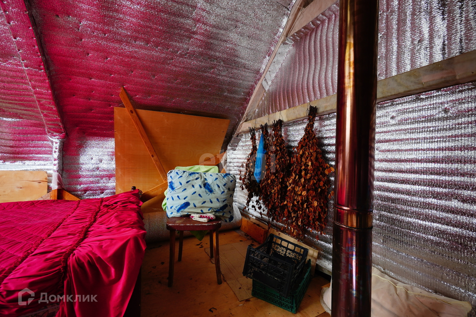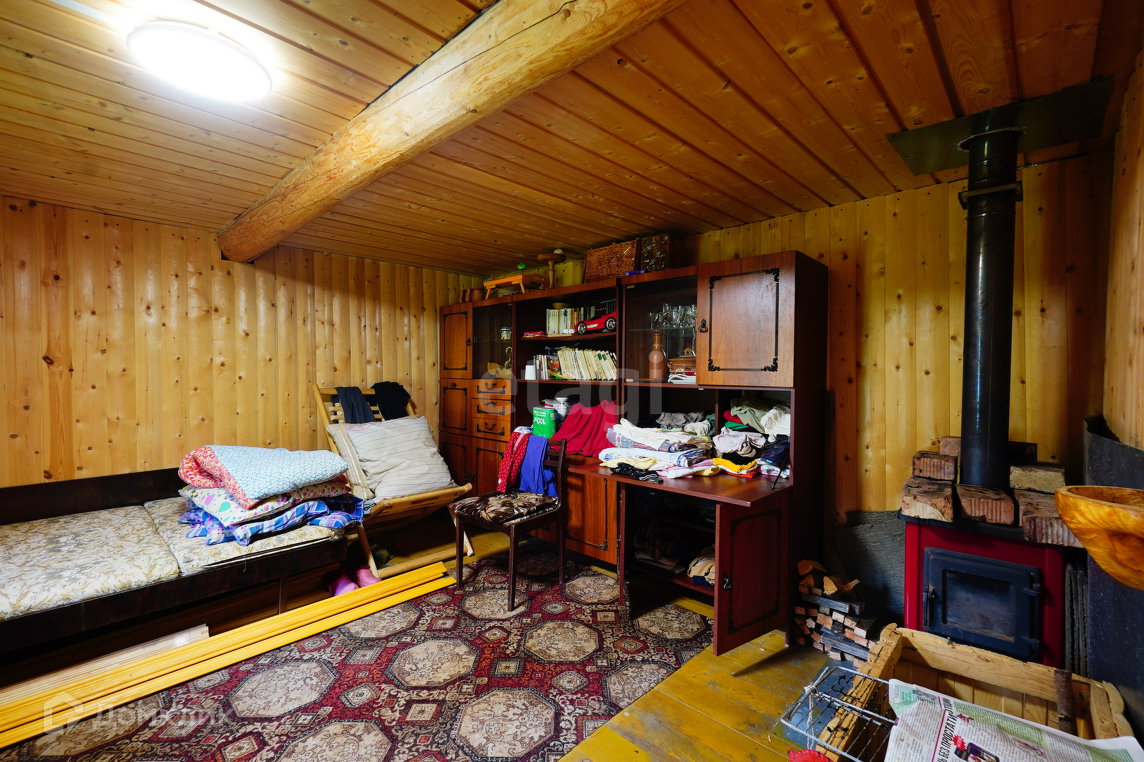 На первом этаже кухня и комната с железной печкой. На втором этаже большая, очень теплая комната!