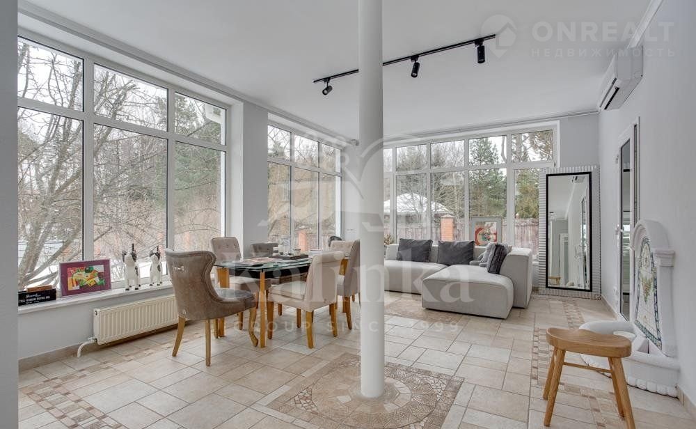 1 этаж: прихожая, гостиная-столовая с камином и выходом на участок, 3 спальни со своими с/у, кухня, бассейн, сауна, комната свободного назначения.
