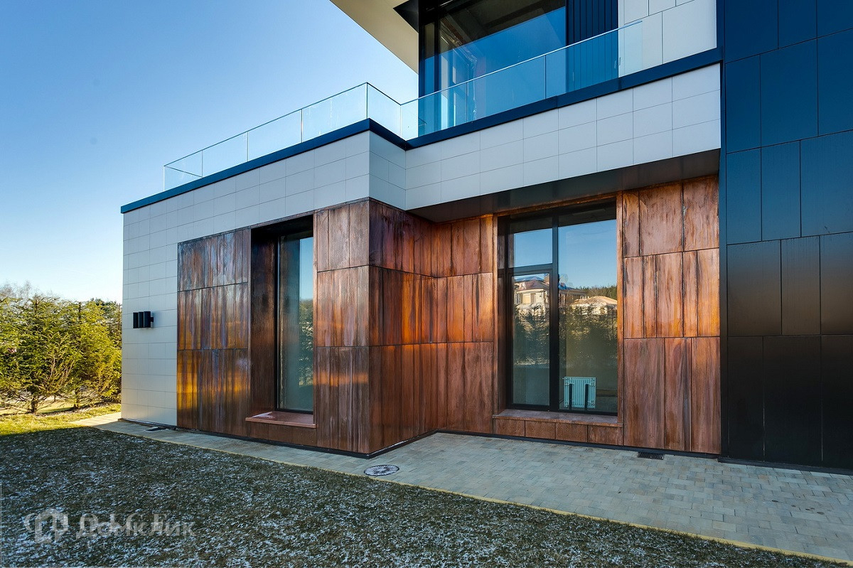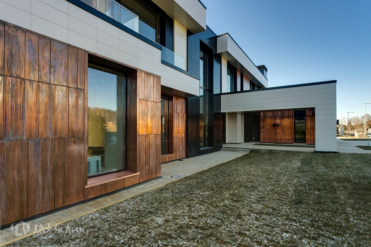 Просторный загородный дом в стиле «хай-тек» расположен в коттеджном поселке «Николино», на участке 15,5 соток. Площадь дома 741 м² увеличена дополнительными открытыми террасами 275 м². Лаконичный фасад резиденции облицован светлым керамогранитом с акцентами из меди и термодерева. Благодаря панорамным окнам интерьер заиграет солнечными лучами. В доме спланировано 5 спален, отдельный блок для персонала, СПА-зона с бассейном, сауной и хамамамом. С первого этажа из гостиной можно выйти на уютное патио, провести время за чашкой чая или устроить семейный вечер с барбекю. Машину можно припарковать в большом встроенном гараже 54 м². Дом предлагается «под отделку», в него заведены все центральные коммуникации, оборудована котельная, отштукатурены стены, выполнено озеленение придомовой территории.