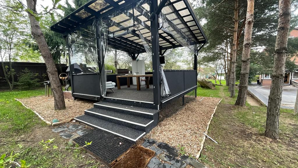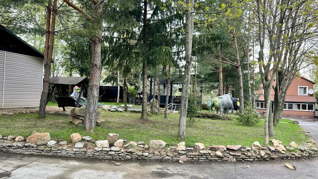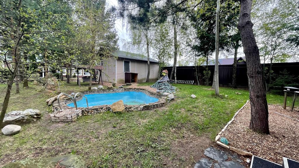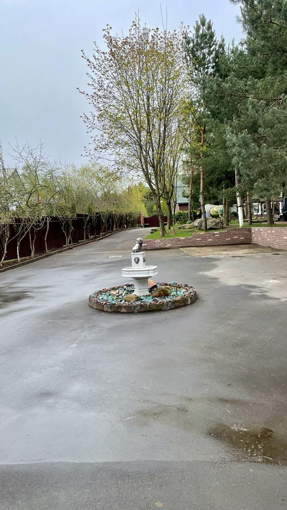 На участке асфальтированная дорога, облагороженная и чистая  территория с  продуманным озеленением и дизайном. Построена беседка, есть бассейн.