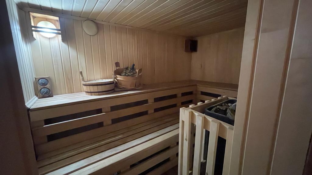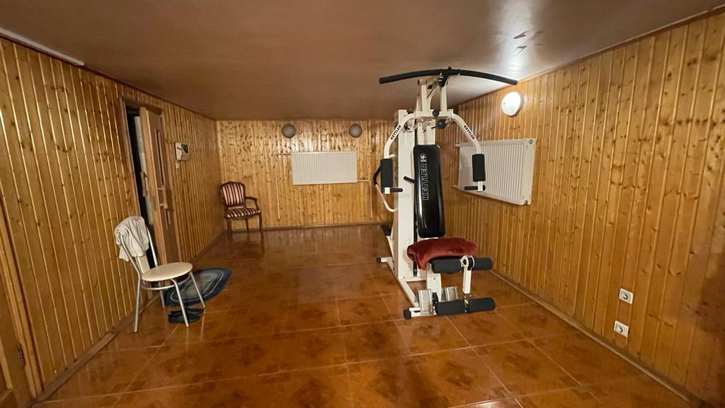 Цокольный этаж оборудован мини-спорт залом, сауной и санузлом с прачечной.