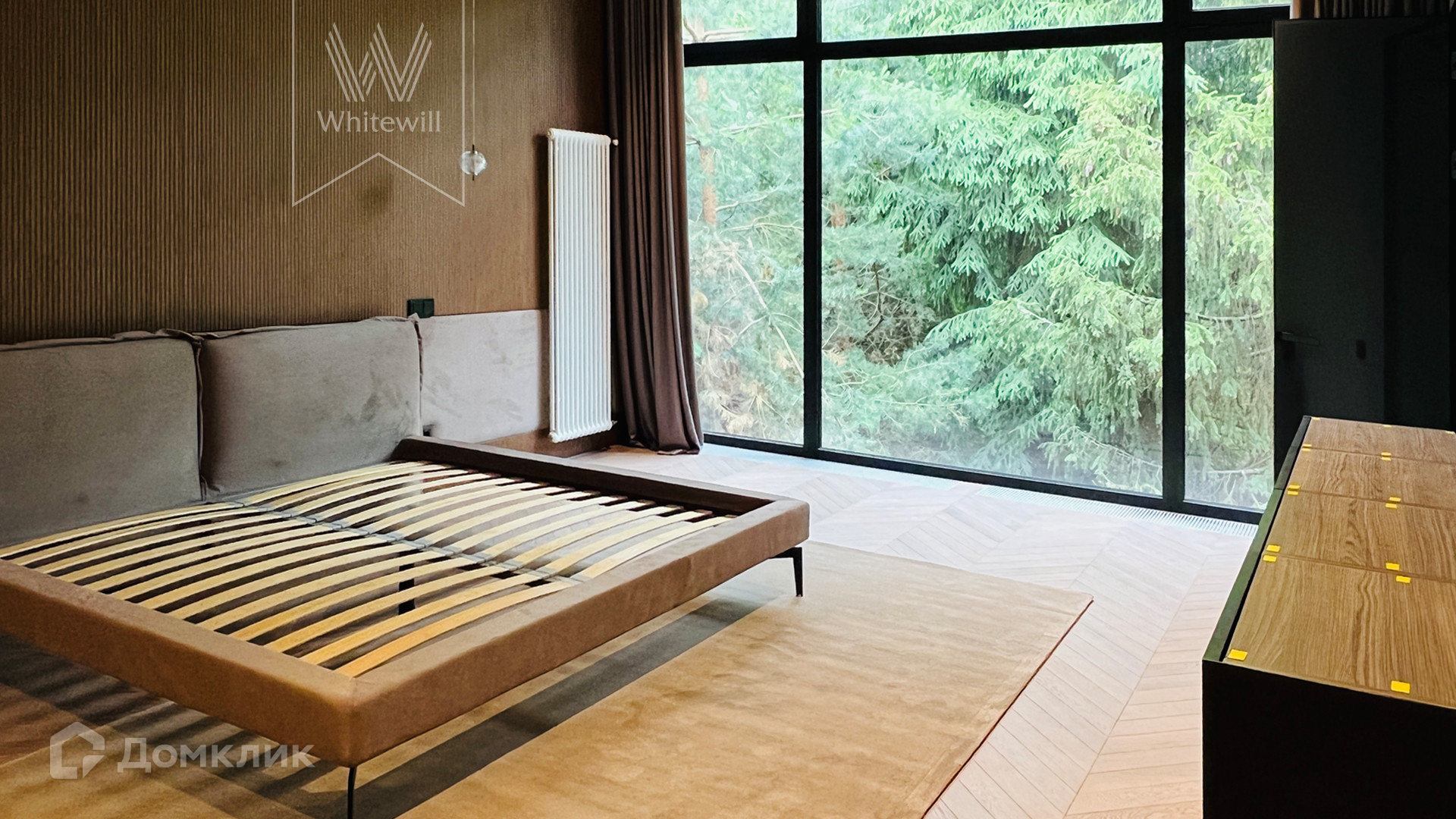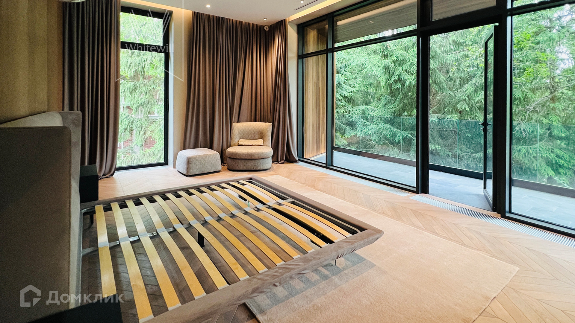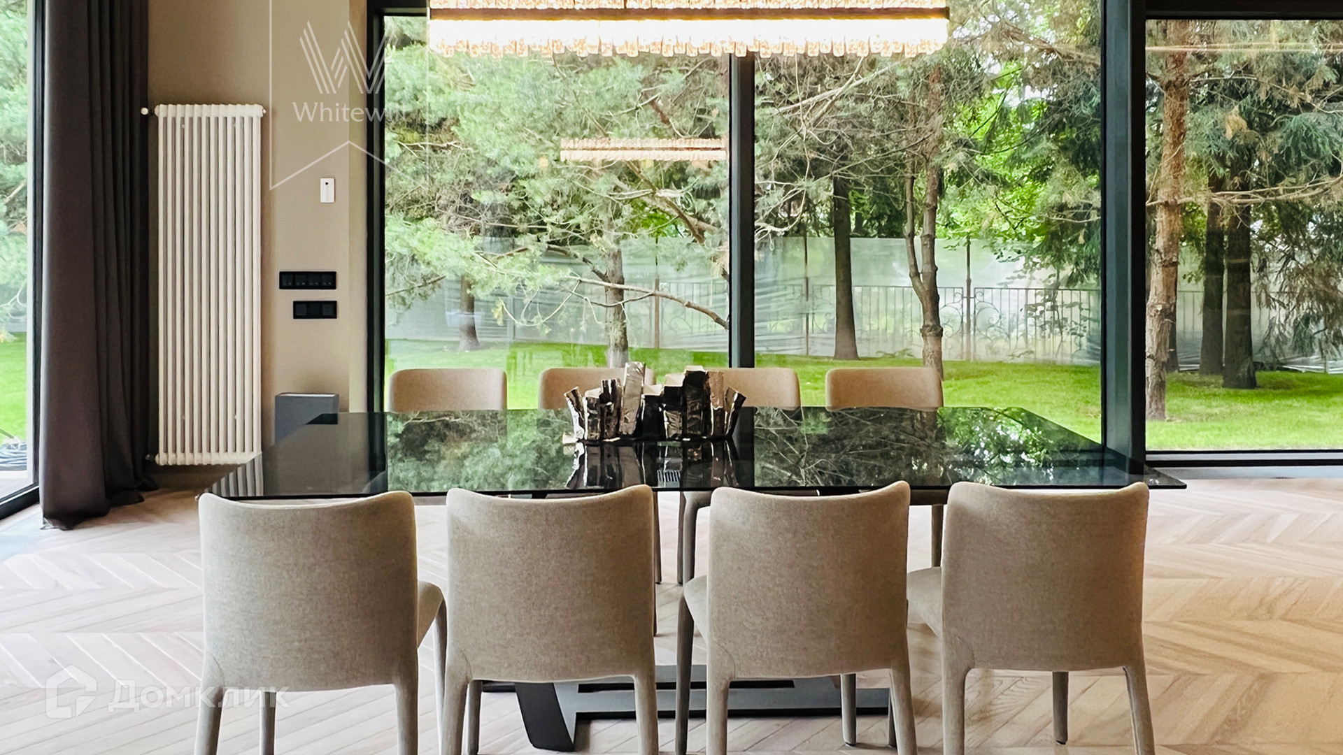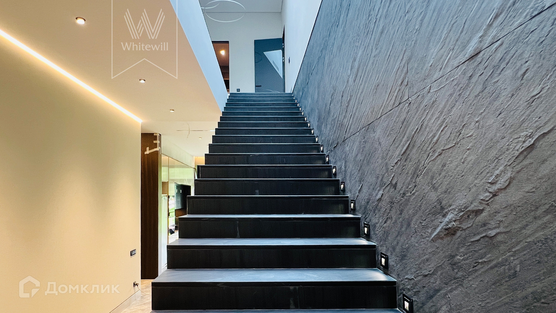 ID 10 669. Николино. Загородный дом площадью 800 м² построен на полевом участке 20 соток. Фасад выполнен в современном стиле, облицован камнем, плиткой и деревом. Коттедж представлен с отделкой «под ключ». В доме спланировали 5 спален, гостиную, кухню, столовую, SPA-зону с бассейном и сауной. Предусмотрен гараж на 2 машины и блок для персонала. На участке засеян газон, вымощены дорожки, растут многолетние деревья.