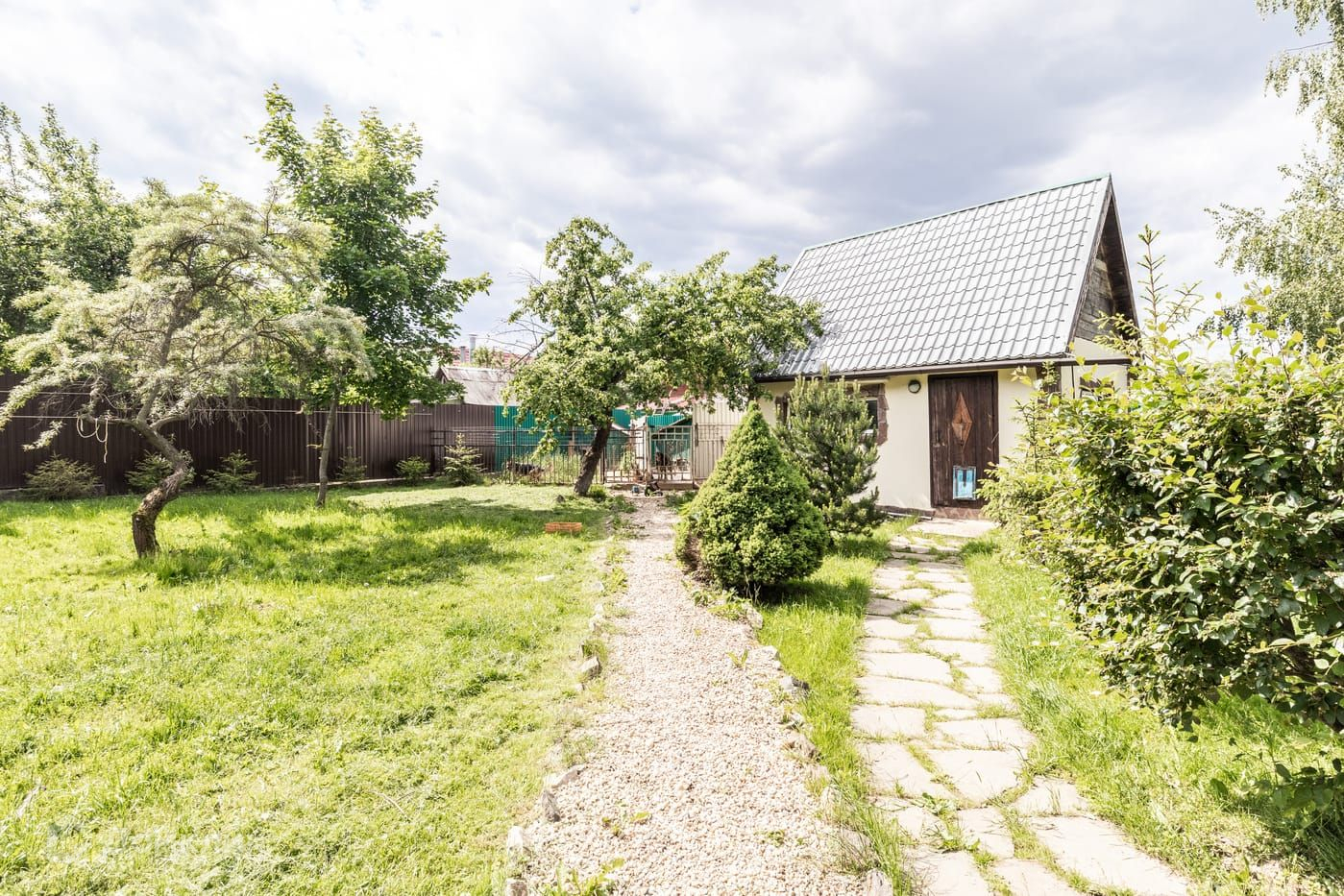- Много высаженных растений и деревьев (Туи, елки, березы, сирень, сосны, клены, яблони, груша, вишня и черешня).
