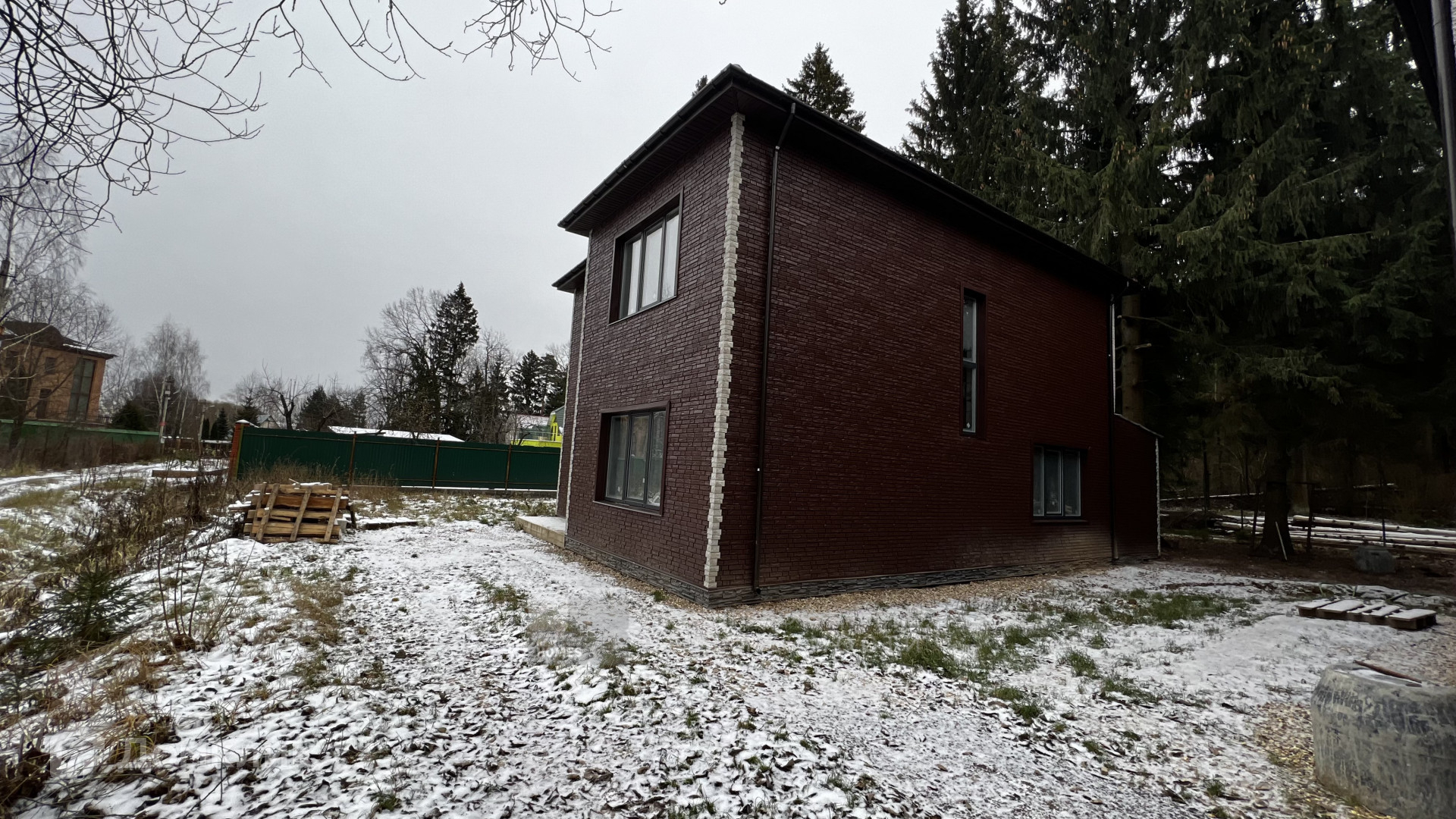 Дом 154 м2 расположен в глубине деревни, вдали от трасс.