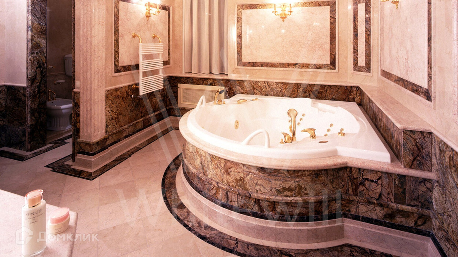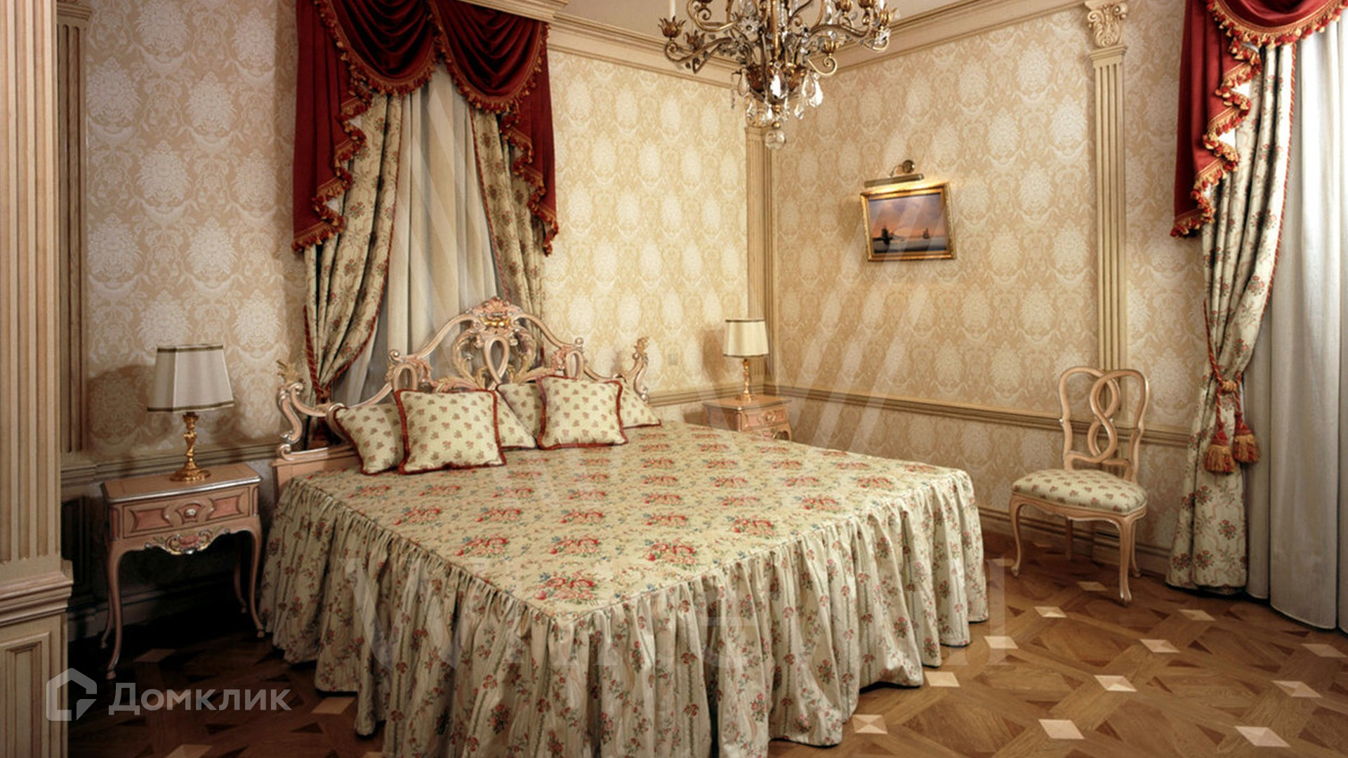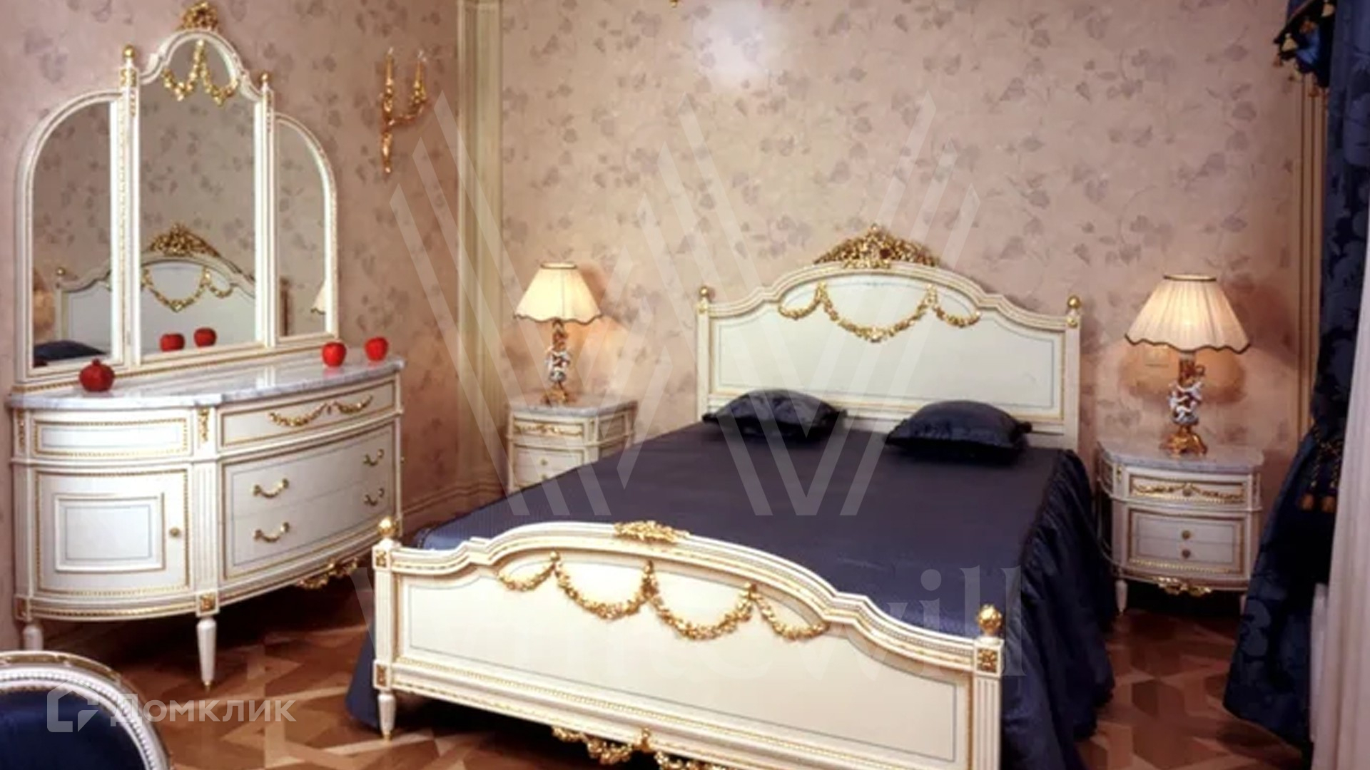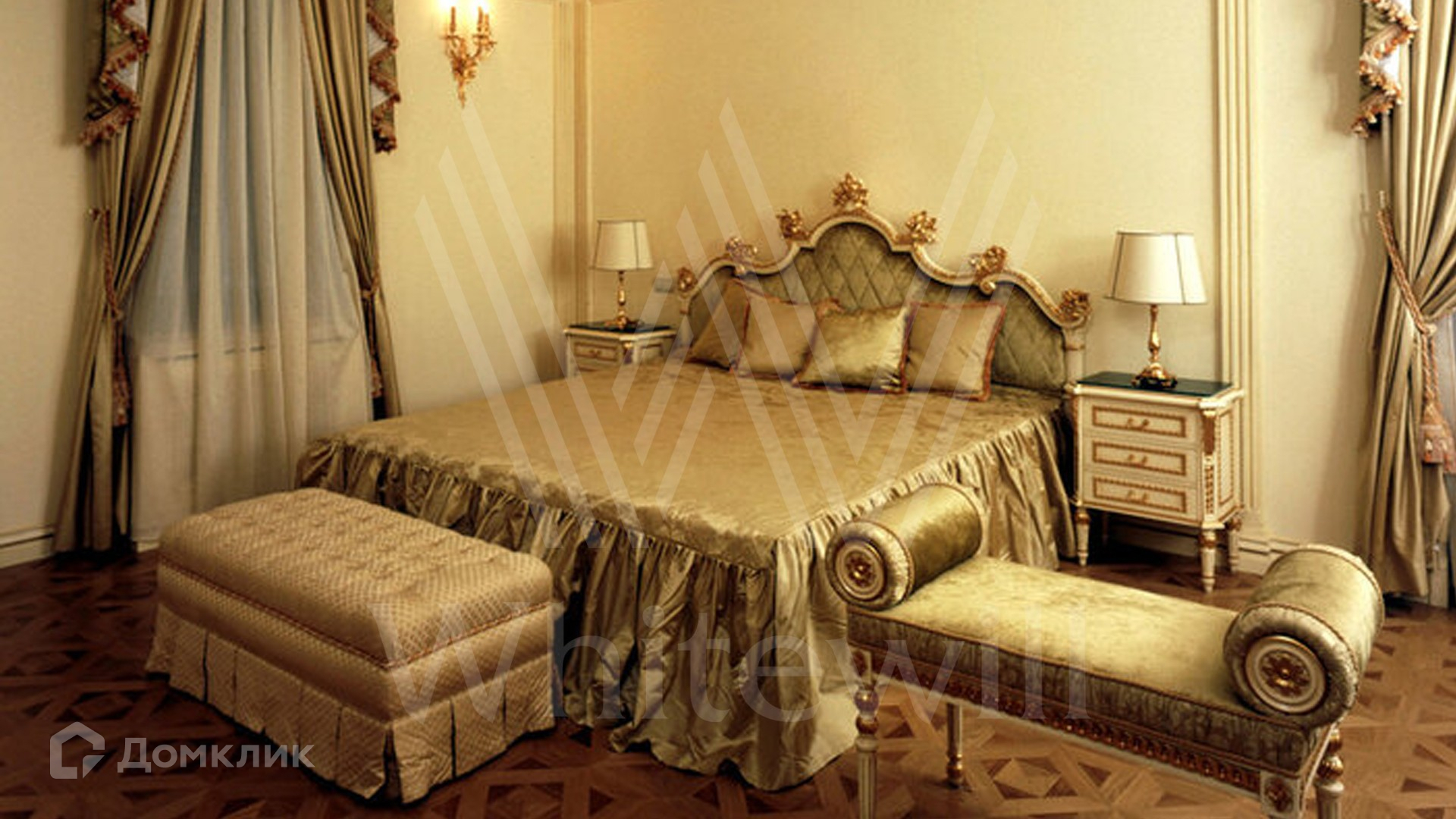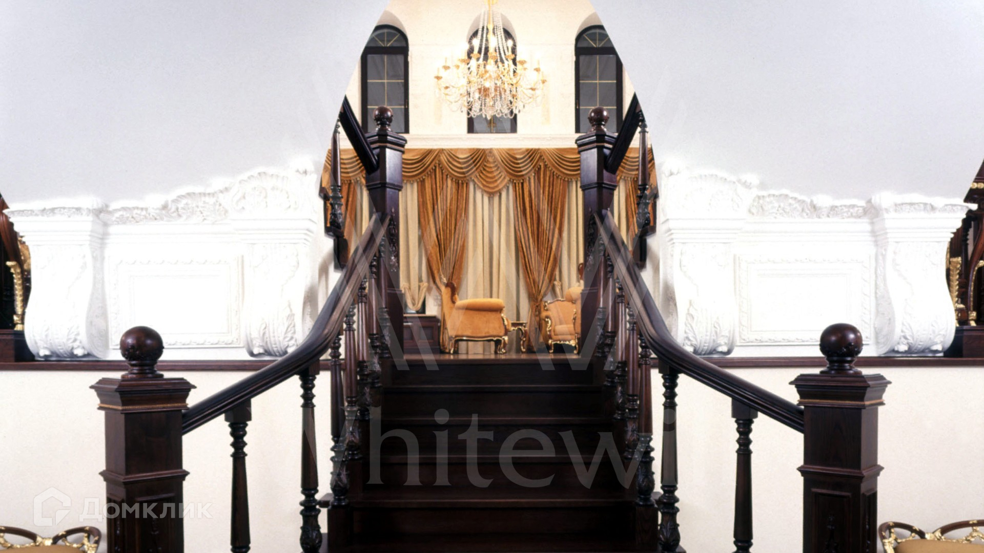 ID 9 223. Николино. Резиденция площадью 538 м² и гараж для 2-х машин с квартирой для персонала расположены на участке 29,9 соток. Фасад главного дома выполнен в неоклассическом стиле — его украшает балюстрада, изящная лепнина и массивный карниз. Интерьер выдержан в классическом стиле — на первом этаже просторная парадная гостиная с камином и вторым светом. На полу наборный паркет, мягкая мебель из ценного дерева украшена позолотой. В доме спланирован кабинет, бильярдная и 3 спальни с изящной резной мебелью.