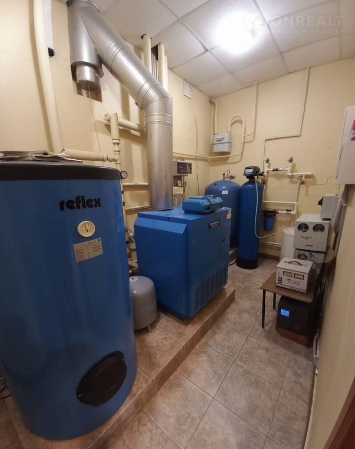 Санузлы есть на всех этажах дома, Отопление дома осуществляется напольным котлом Будерус Логана 234, мощностью 60 киловатт, в комплексе с баком косвенного нагрева на 300 литров. Все насосы повышающего давление фирмы Грюнфус ,производитель Германия.