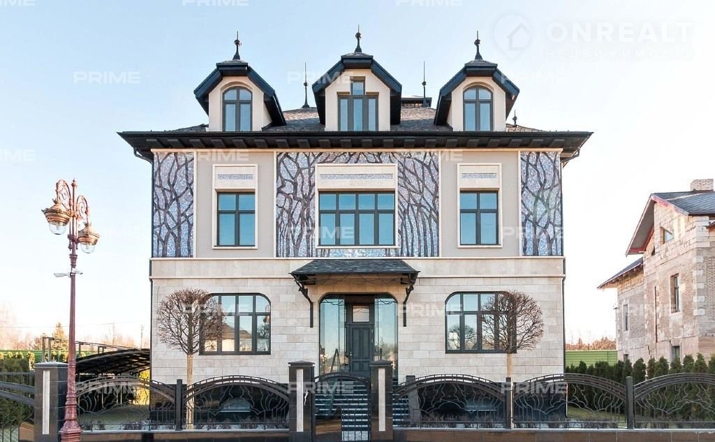 Двухэтажный дом с мансардой и цокольным этажом, общей площадью 700 кв. м, выделяется изысканным фасадом, выполненным из натурального камня, что придает ему элегантность и долговечность. Экстерьер дома полностью завершен, а на участке площадью 11 соток создан профессионально спроектированный ландшафтный дизайн. Особое внимание уделено подбору деревьев, которые были привезены из Германии, чтобы создать атмосферу гармонии и уюта.