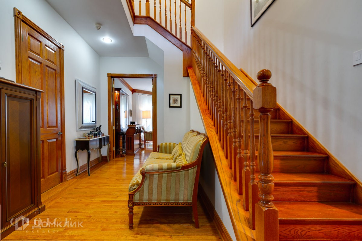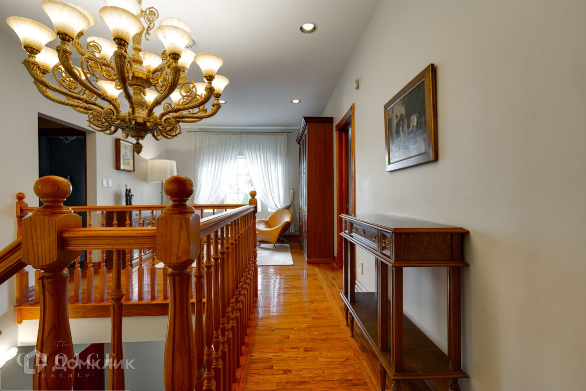 Трехэтажный дом в классическом стиле, расположен на тихой улице. Здание построено из экологически чистых материалов, предлагается с отделкой и мебелью. Общая площадь усадьбы – 600 м2, площадь участка – 21 соток. На территории выполнен ландшафтный дизайн, оборудована детская площадка. Есть отдельный дом для охраны, встроенный гараж на 2 автомобиля.