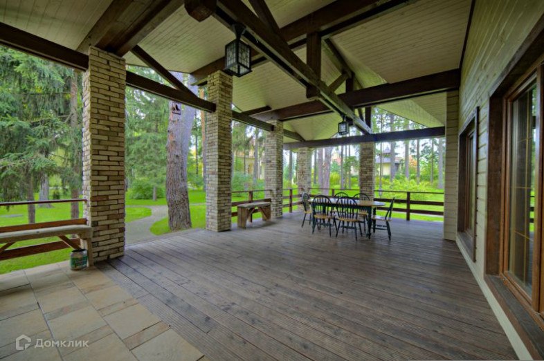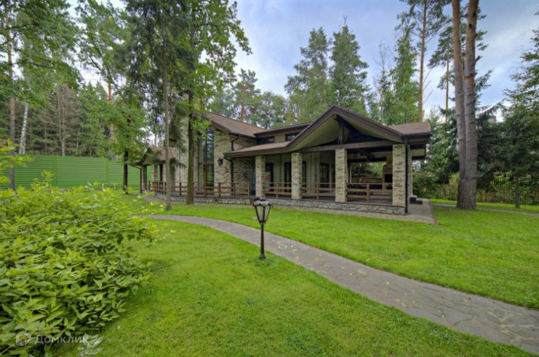 Коттедж, построенный в средиземноморском стиле, стоит в окружении величественных многовековых сосен, елей. Фонтан, красивый гостевой домик с открытой верандой, гостиной с камином, оформленной в скандинавском стиле гармонично вписываются в живописный ландшафт.