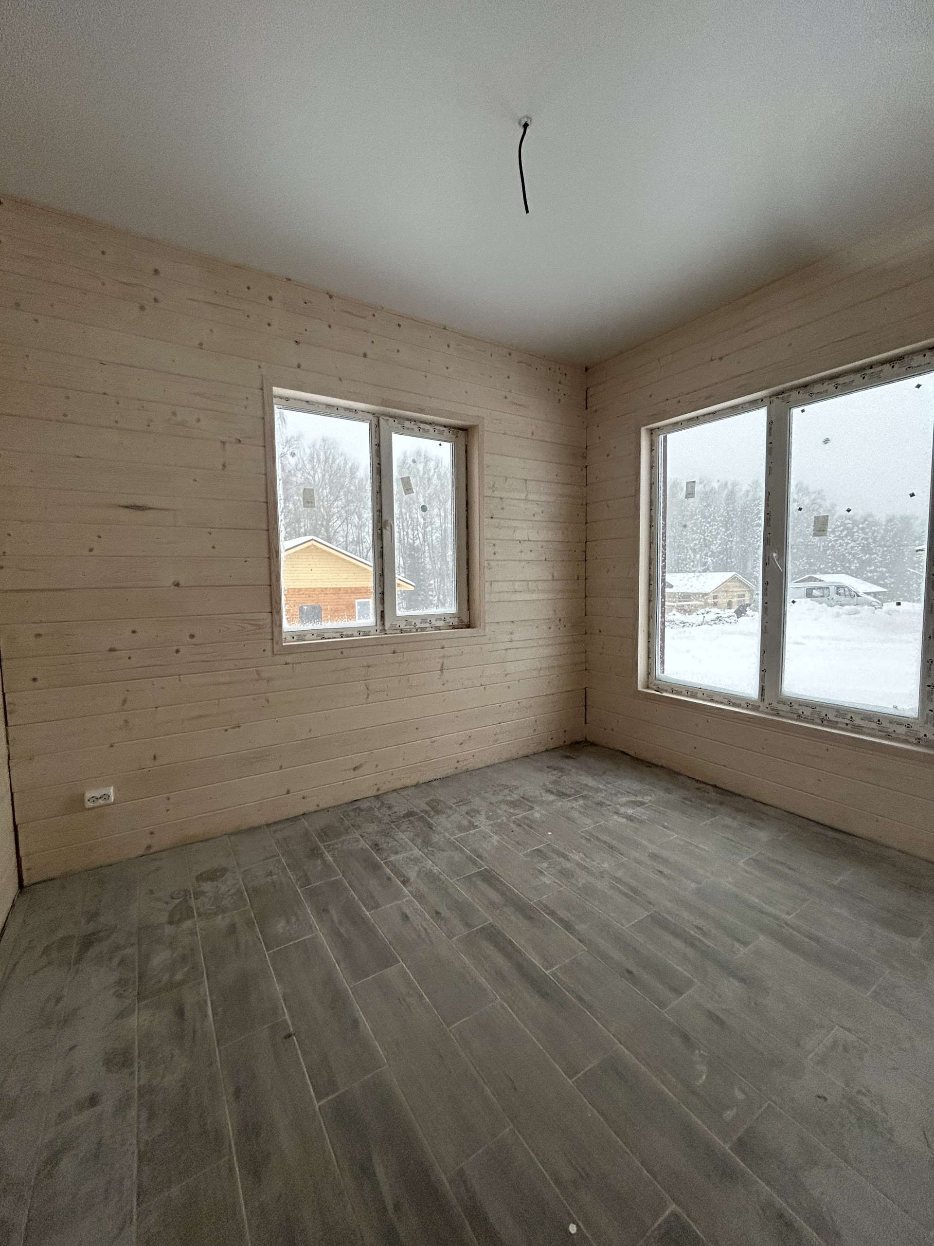 Стены: брус с дополнительным утеплением, с двух сторон отделка имитацией бруса и покраска.