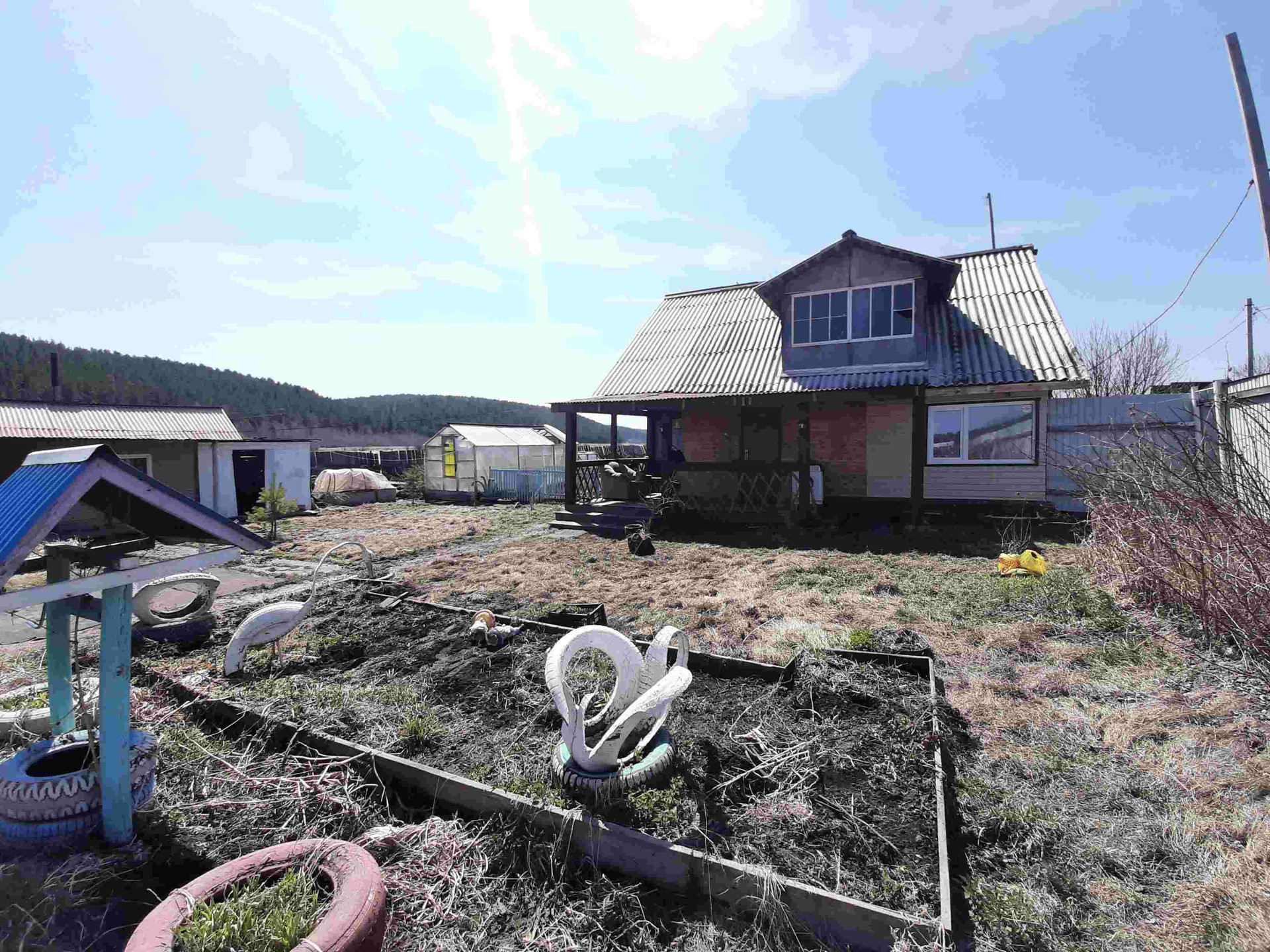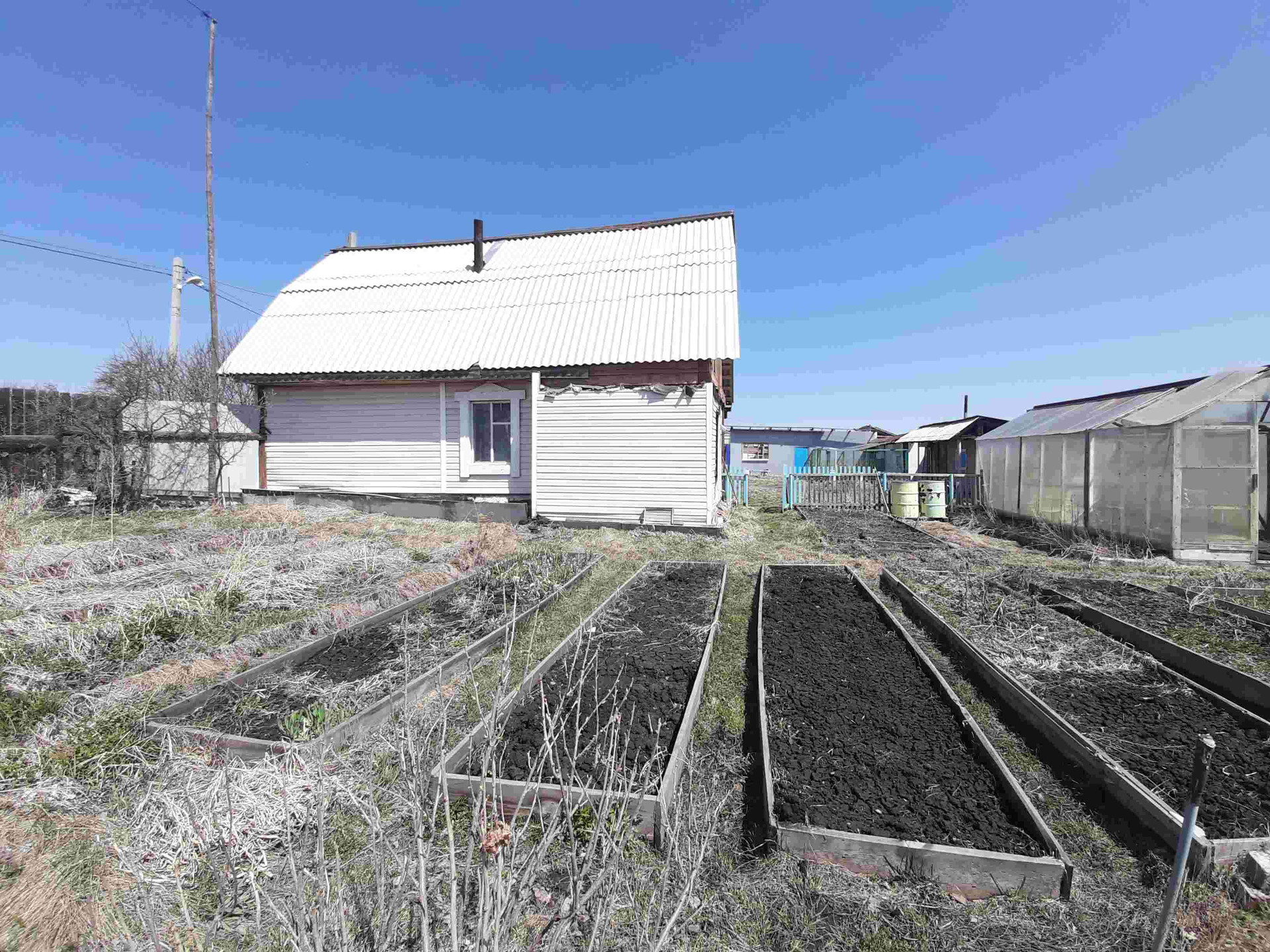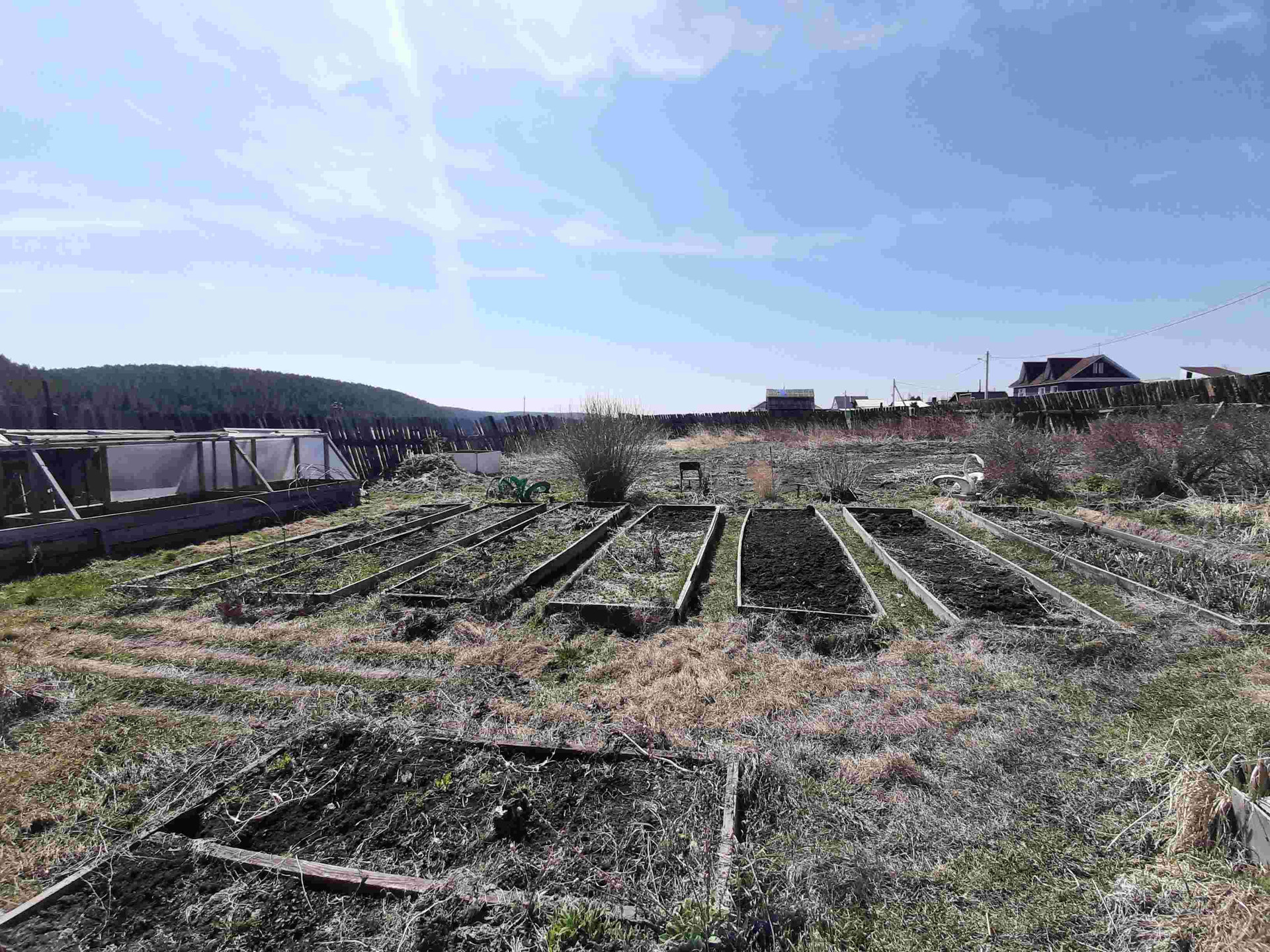 Постройки: теплица 4х6, парник, курятник, баня 3х4, гараж (не достроенный).