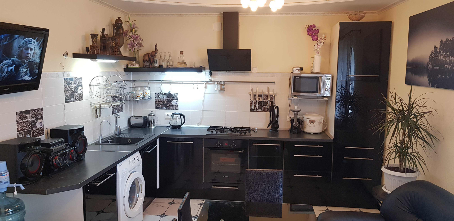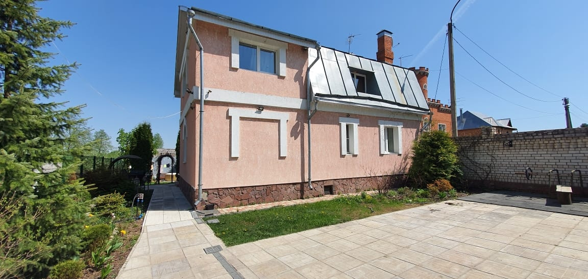 Зал, кухня, два санузла, 4комнаты, погреб, сауна, котельная. Хоз блок и навес на две машины