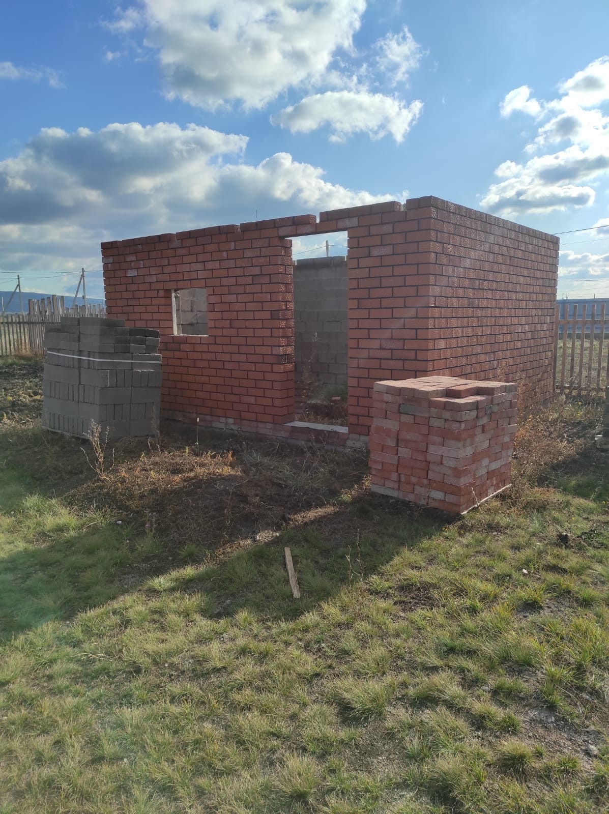 На участке начали стройку новой бани.