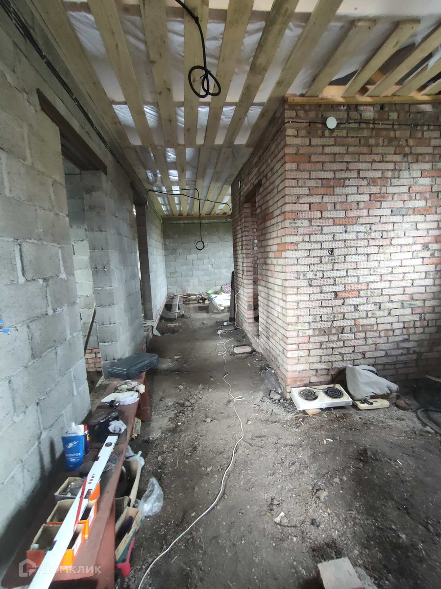 Дом построен из качественного материала в основании ленточный фундамент , стены возведены из двойного шлакоблока благодаря которому вам не нужно дополнительно его утеплять с наружи. Проведен свет , имеется скважина на 10 м, газ не заведен.