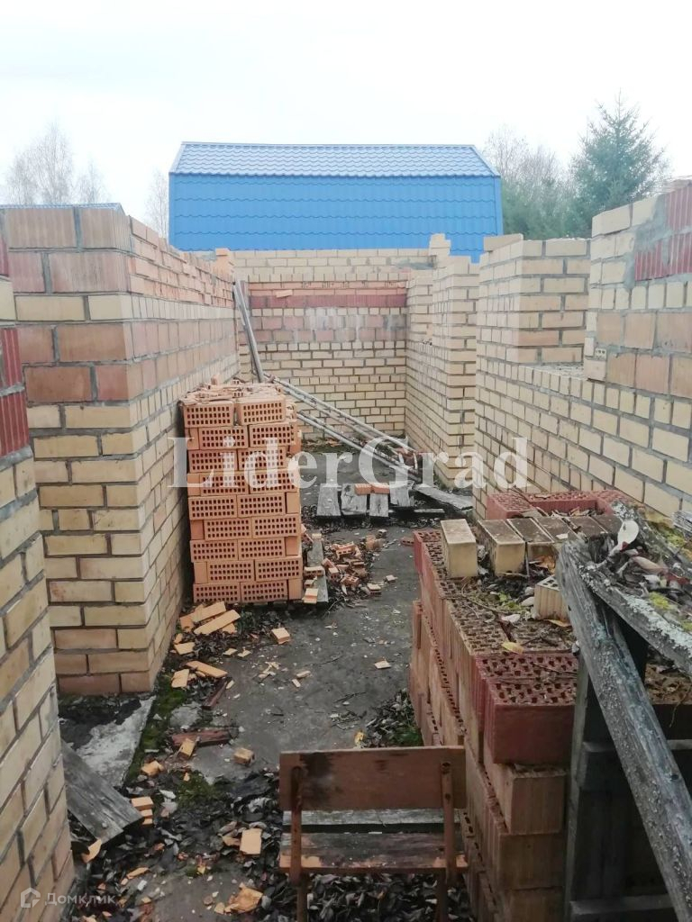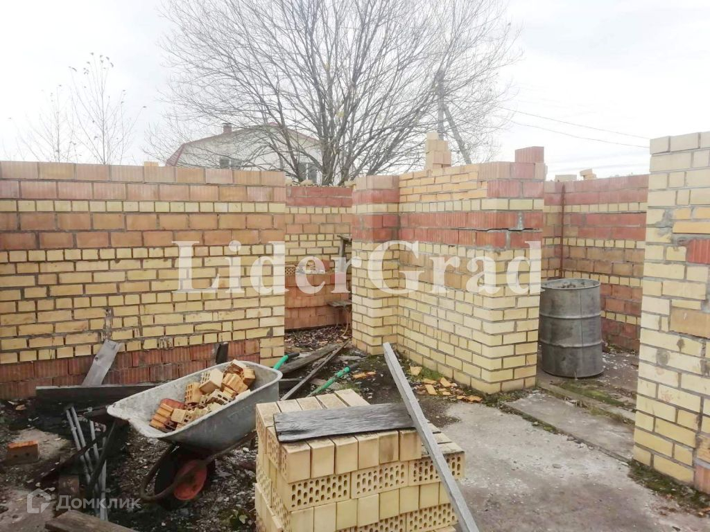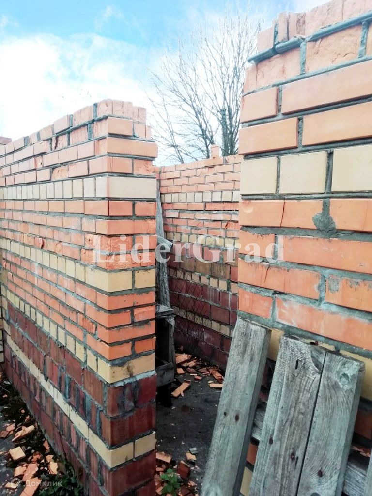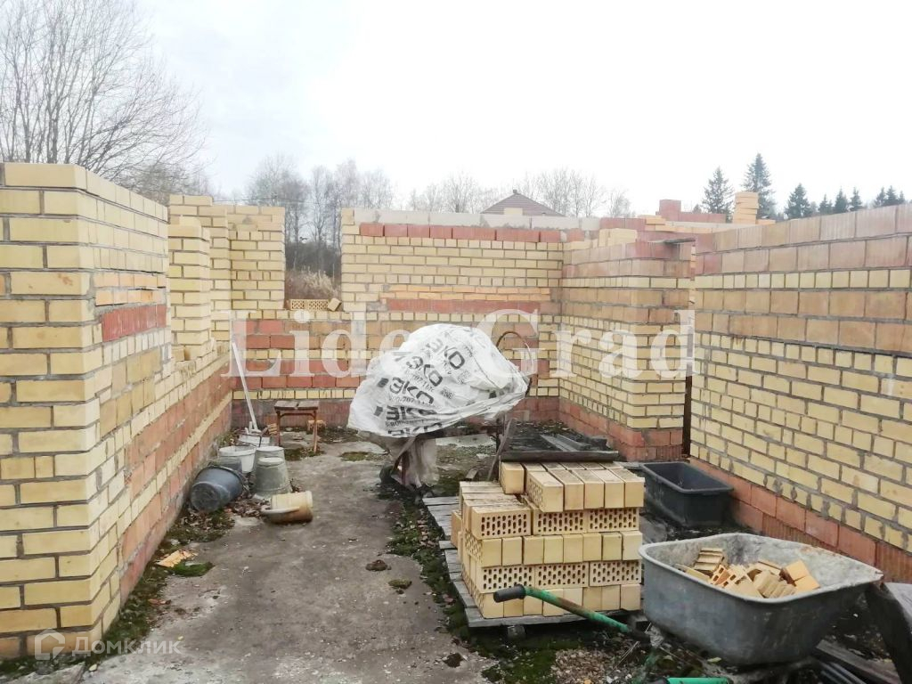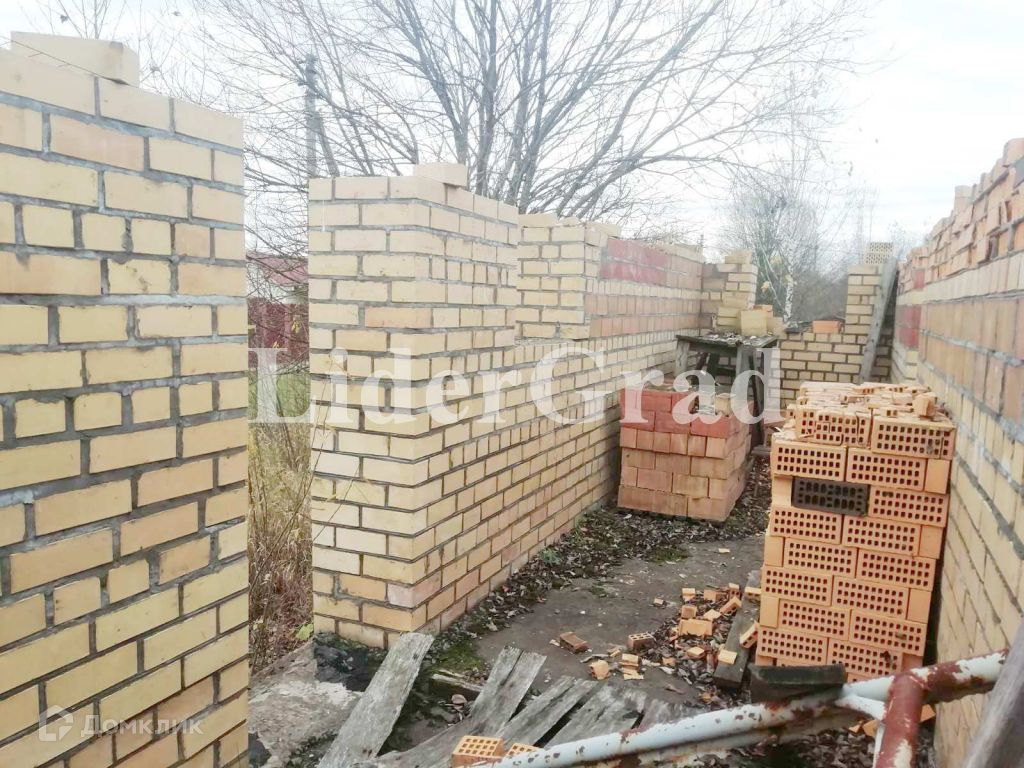 На участке заложен кирпичный дом (до первого этажа) площадью 140 кв м. (первый этаж), подведено электричество, пробурена скважина, кроме того имеется колодец и сарай. Также имеются плодоносящие растения.