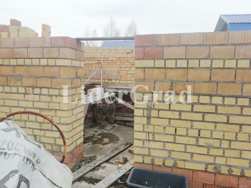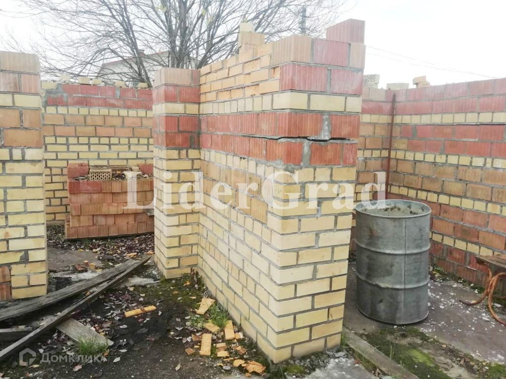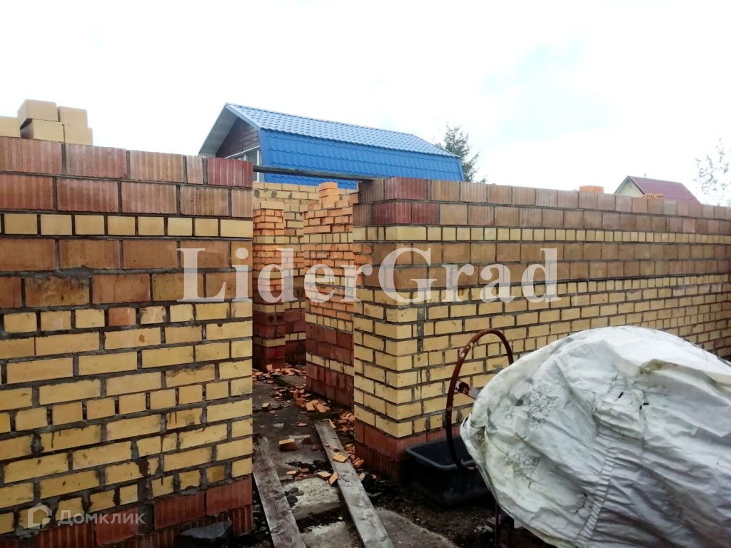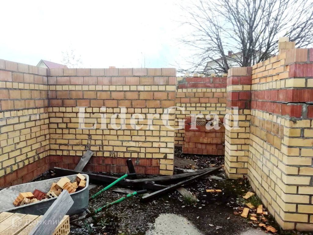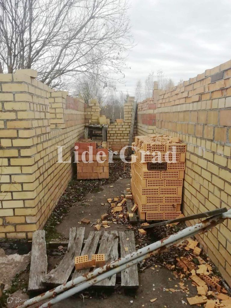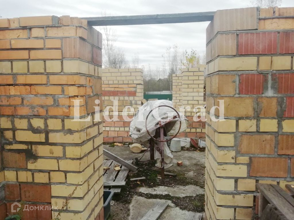 На участке заложен кирпичный дом (до первого этажа) площадью 140 кв м. (первый этаж), подведено электричество, пробурена скважина, кроме того имеется колодец и сарай. Также имеются плодоносящие растения.