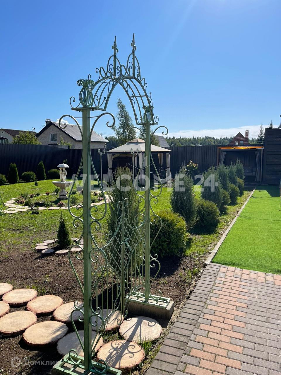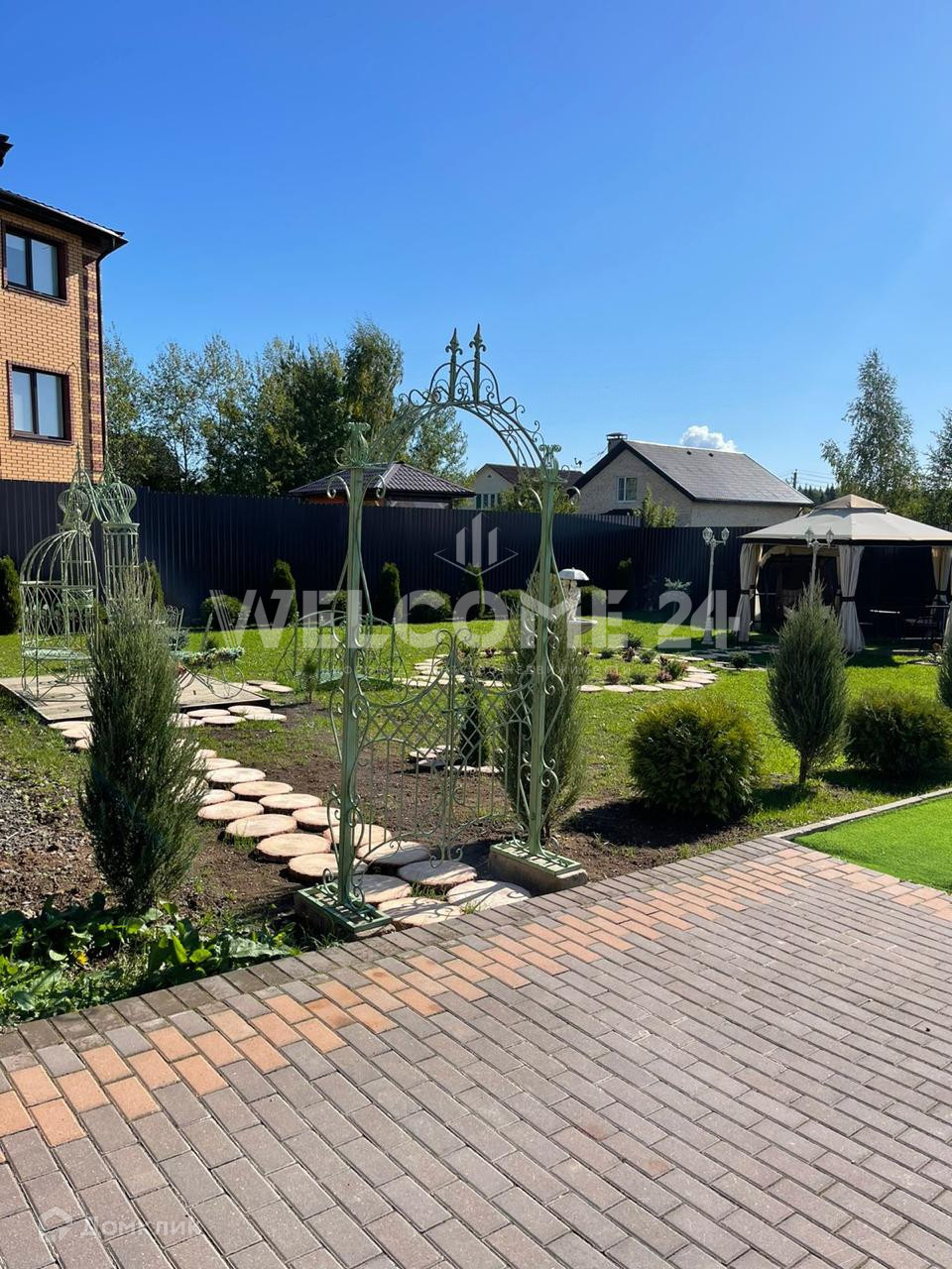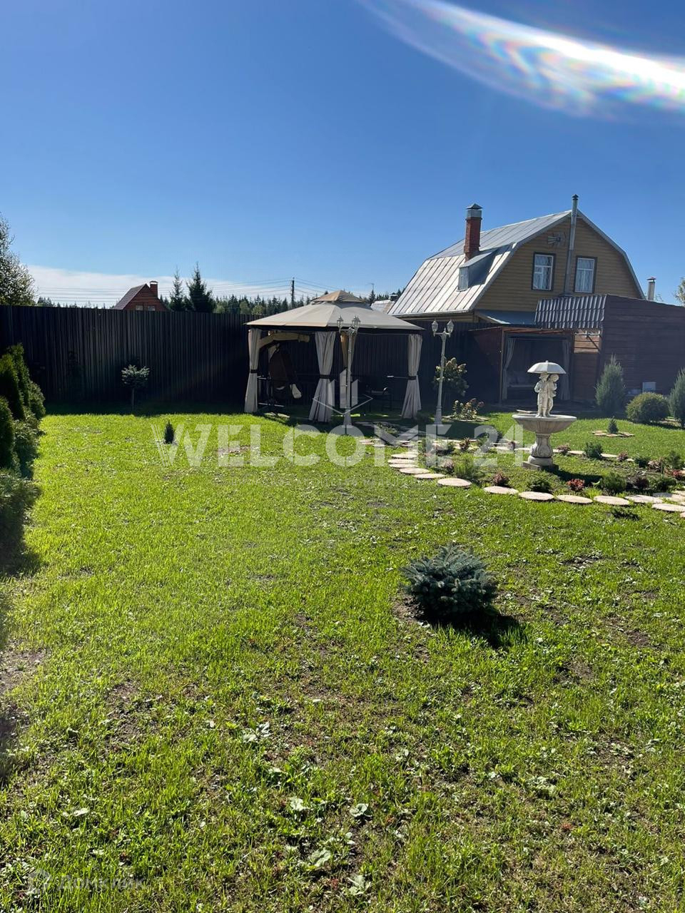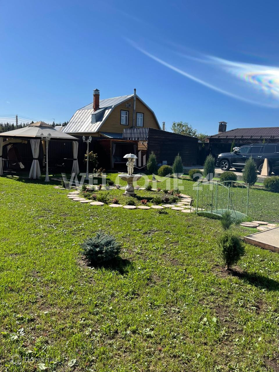 Дом расположен на земельном участке 15 соток. Участок освоен. Выполнен ландшафтный дизайн по периметру. Засеян газоном. Высажены деревья. На участке расположена баня и большая, уютная, крытая беседка с мангалом, для дружеских посиделок в летний период. По участку размещены архитектурные формы, залит фундамент под 2-х этажный гараж на 2 машины. Можно использовать под домашний оздоровительный центр.