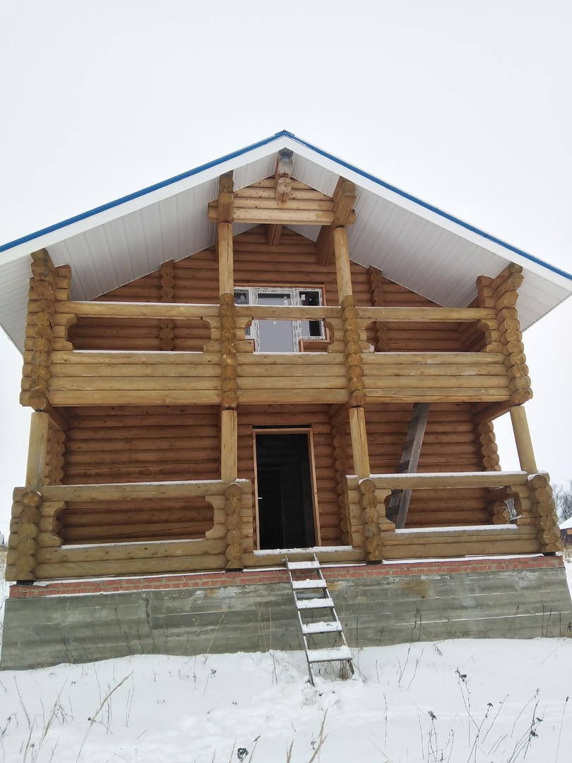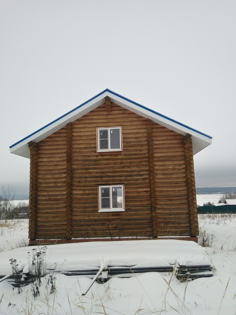 Дом двух этажный площадью - 131 кв.м. Бревно оцилендрованное 240мм лиственница, кровля из металочерепицы , фундамент ленточный.