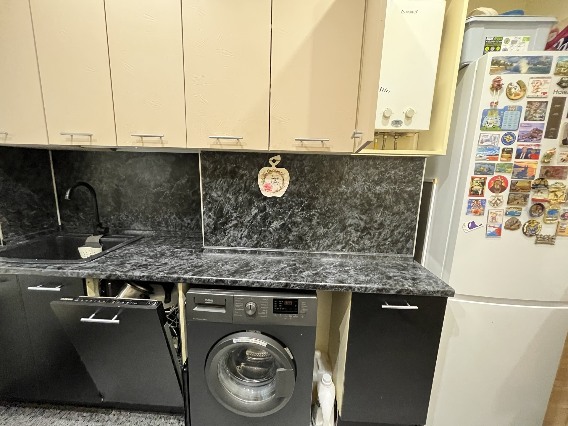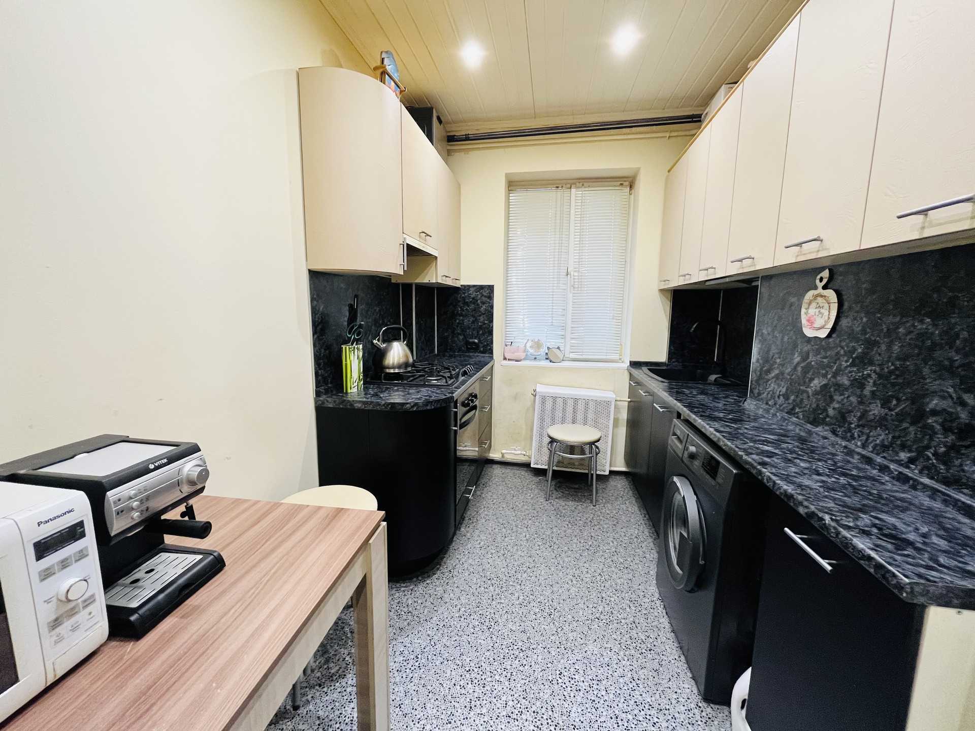 Квартира в хорошем состоянии. Окна пластик, кухонный гарнитур с встроенной техникой, с/у совместный (кафель), заменены трубы, установлены счетчики на воду, дверь металл. На кухне установлена газовая колонка (автомат), в связи с чем перебоев с горячей водой не бывает. Мебель остается в подарок.