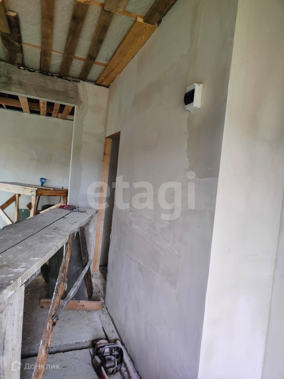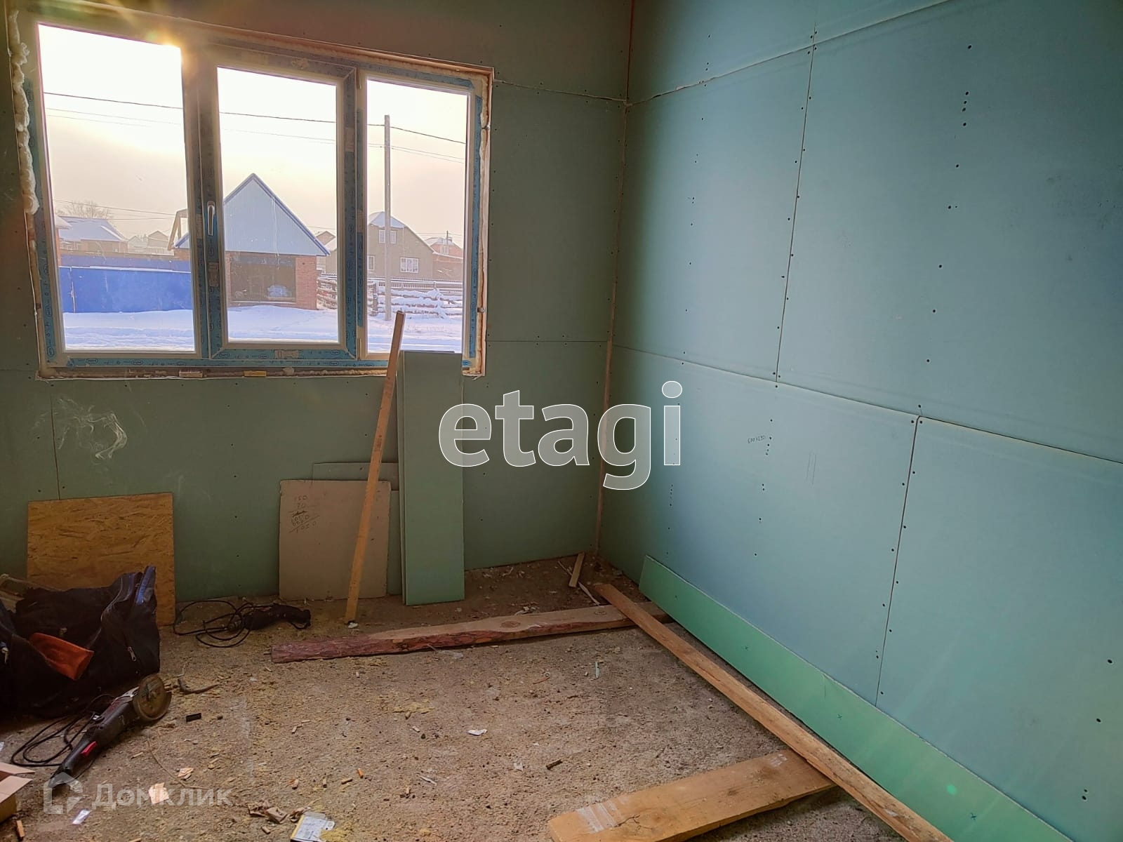 В доме газовое отопление, электричество заведено, вода есть. Полы бетонная плита, (тёплый пол) стены остались подготовить под обои. Окна пластиковые. Хорошая входная дверь металлическая.