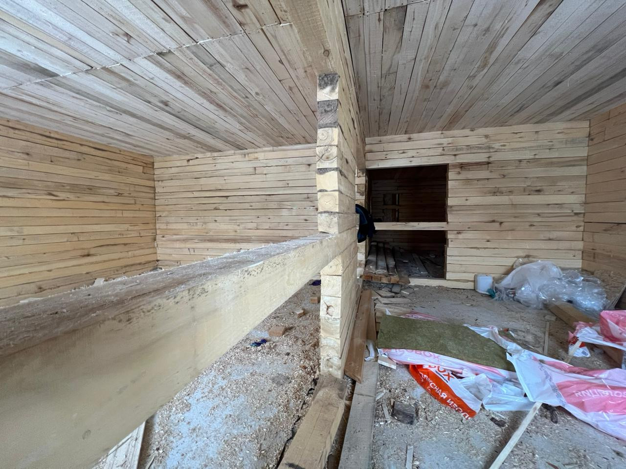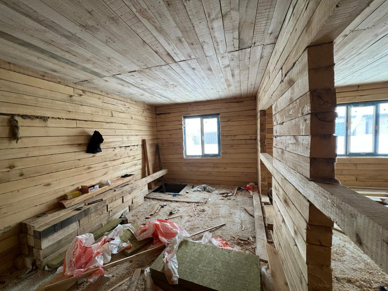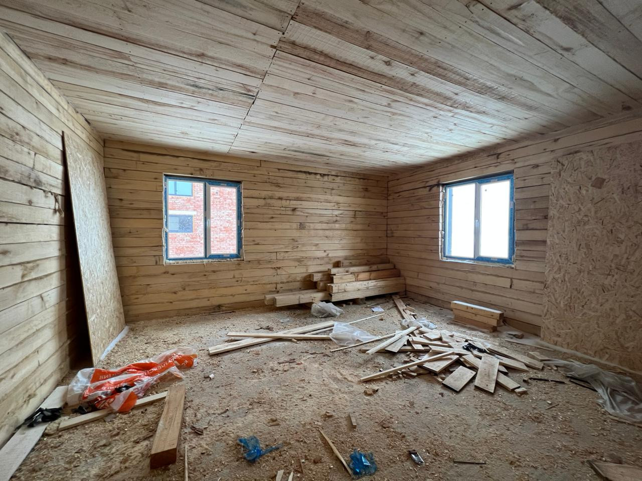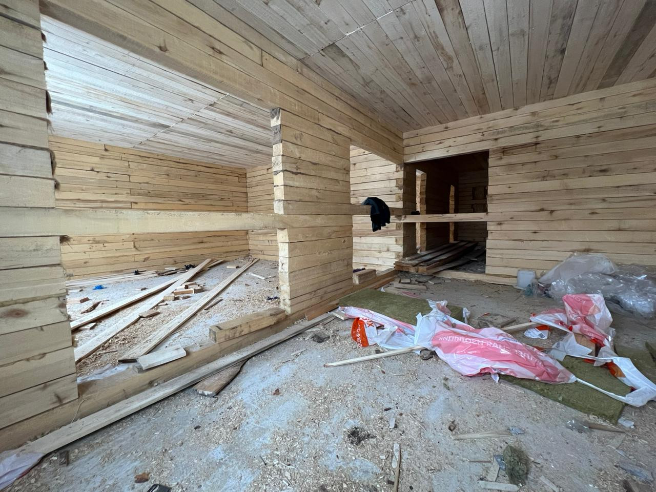 Дом из бруса 12*12,5 м; обшитый металлосайдингом и утепленный (технониколь 100 мм и 50 мм); фундамент свайно, ленточный; окна пластиковые, тройное остекление, ламинированные, установлена противо взломная система; полы стяжка под теплый пол; вода в доме скважина 9 м (второй забор); канализация септик (три кольца); крыша профнастил (цвет графит).