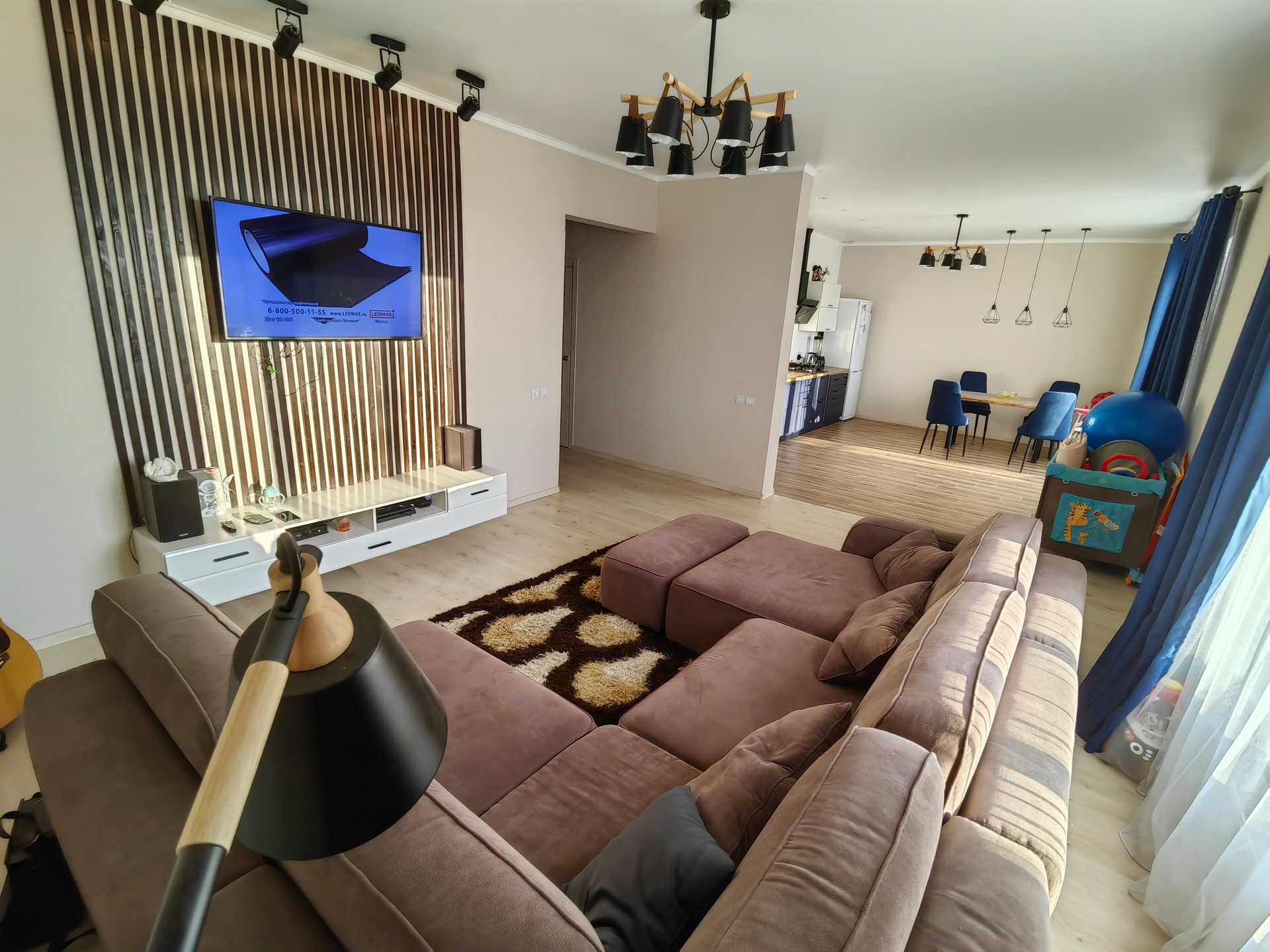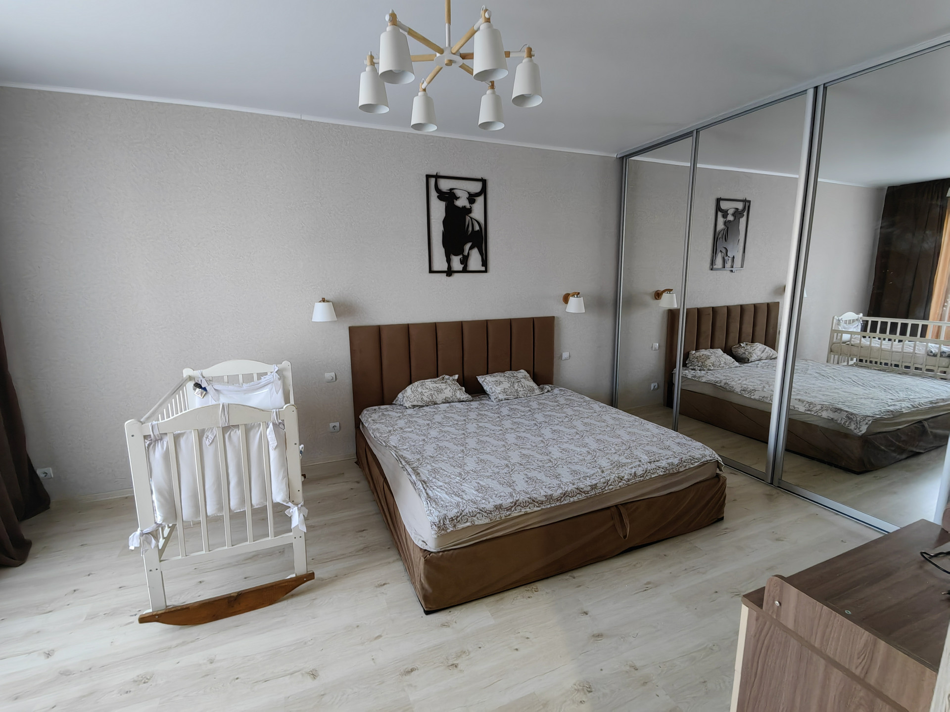 Покупателю остается: встроенные шкафы в коридоре и спальне, кухонный гарнитур, тв тумба, люстры + запас строительных материалов (плитка, ламинат, обои, кирпич, металл, песок и прочее).