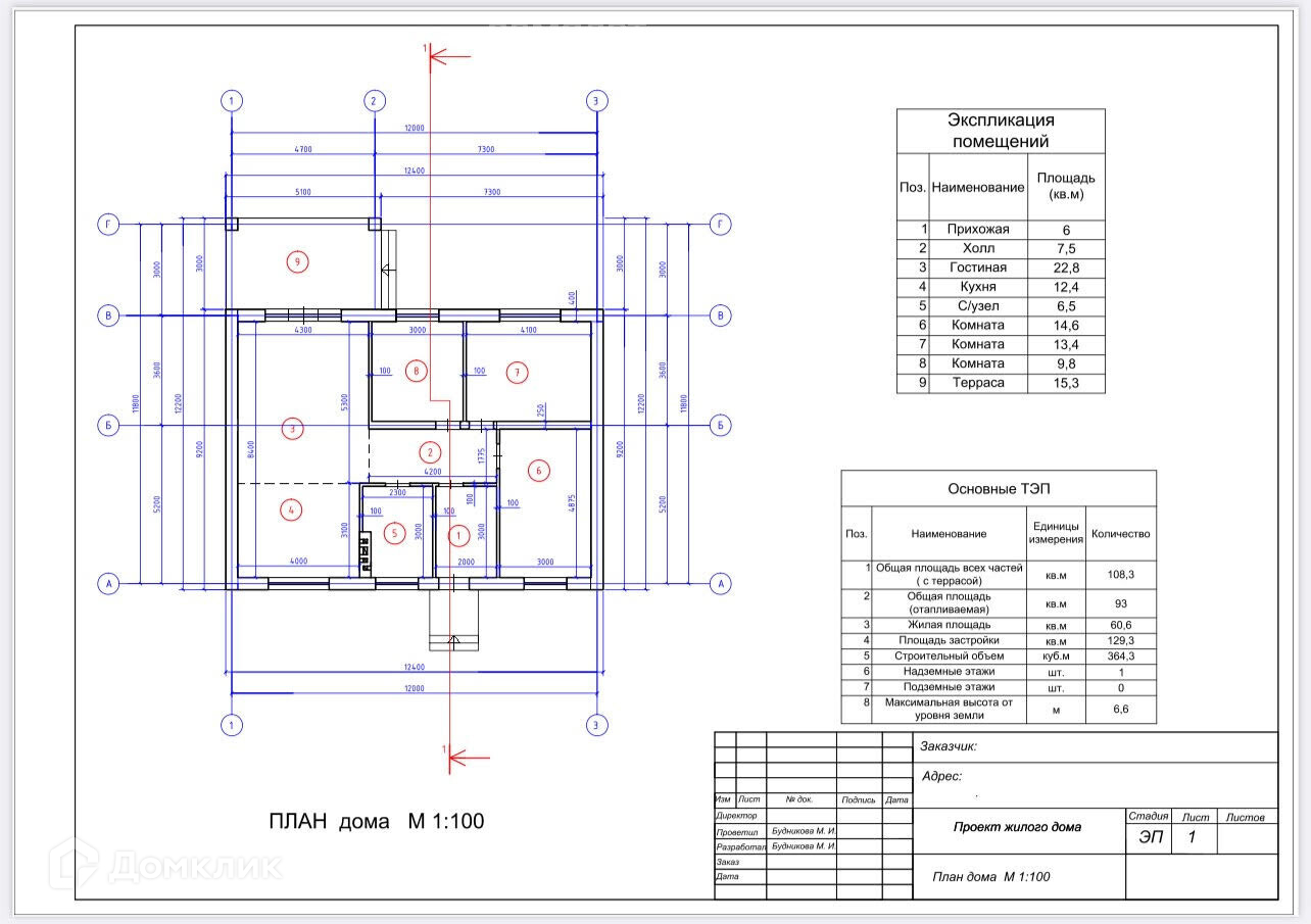 Планировка дома 108м2 на участке 10 соток