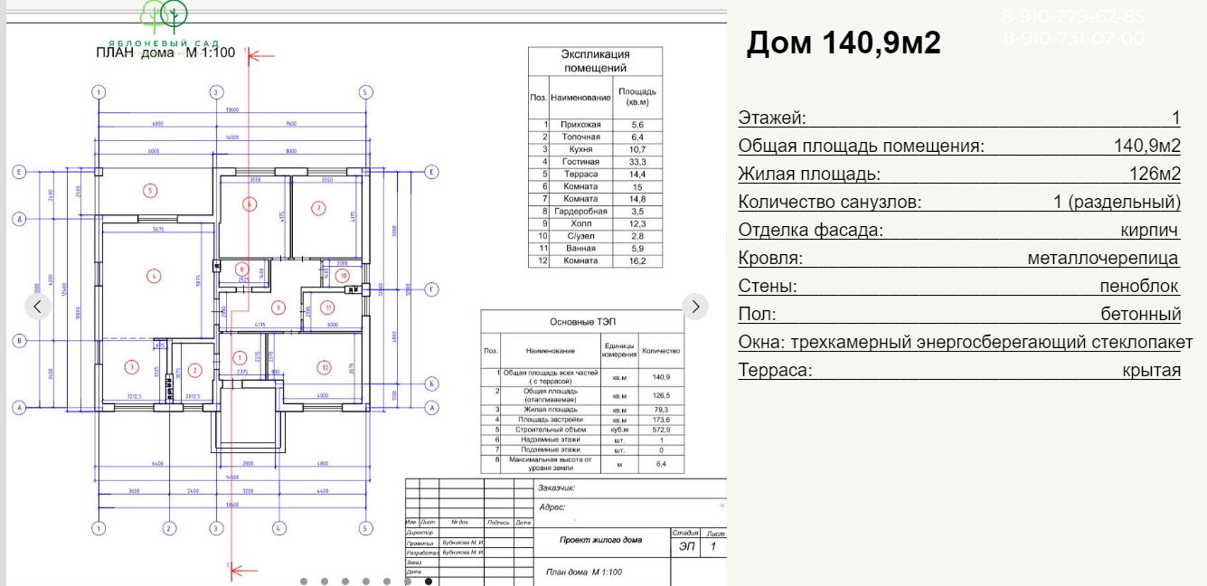 Общая площадь 140.9 м2
