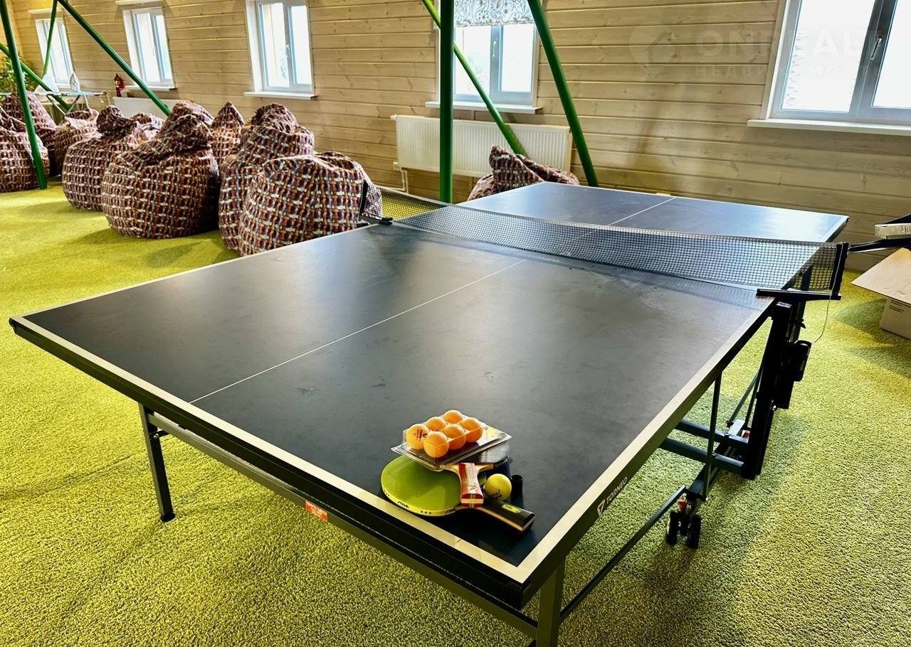 Над бассейном находится большая комната отдыха с теннисным столом.