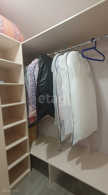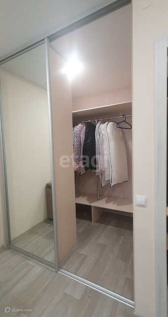 В комнате есть просторная,вместительная гардеробная с освещением