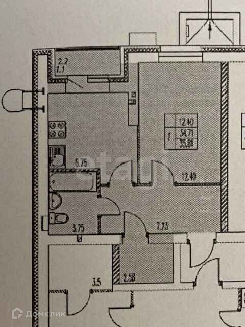 Общая площадь 35.2 м2