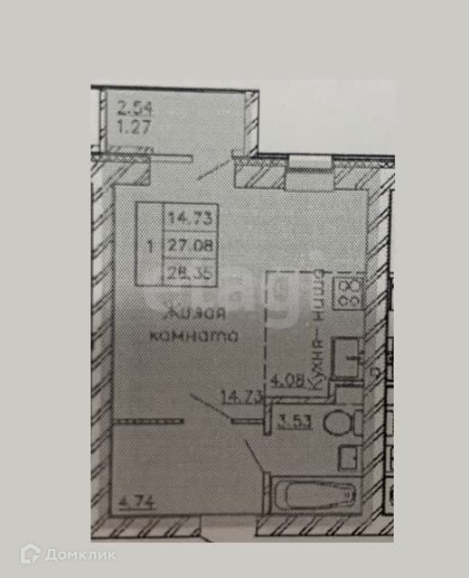 Общая площадь 27.2 м2