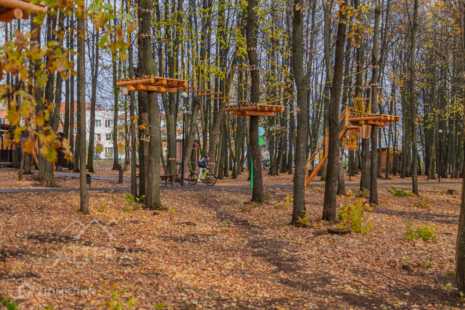 Изюминка ЖК — большой классный парк! Для любителей пеших прогулок и утренних пробежек в парке предусмотрены аллеи, зона для йоги, есть веревочный парк, мангальные.