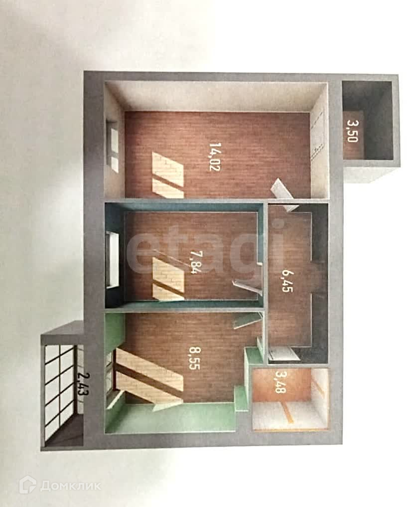 Общая площадь 44.1 м2